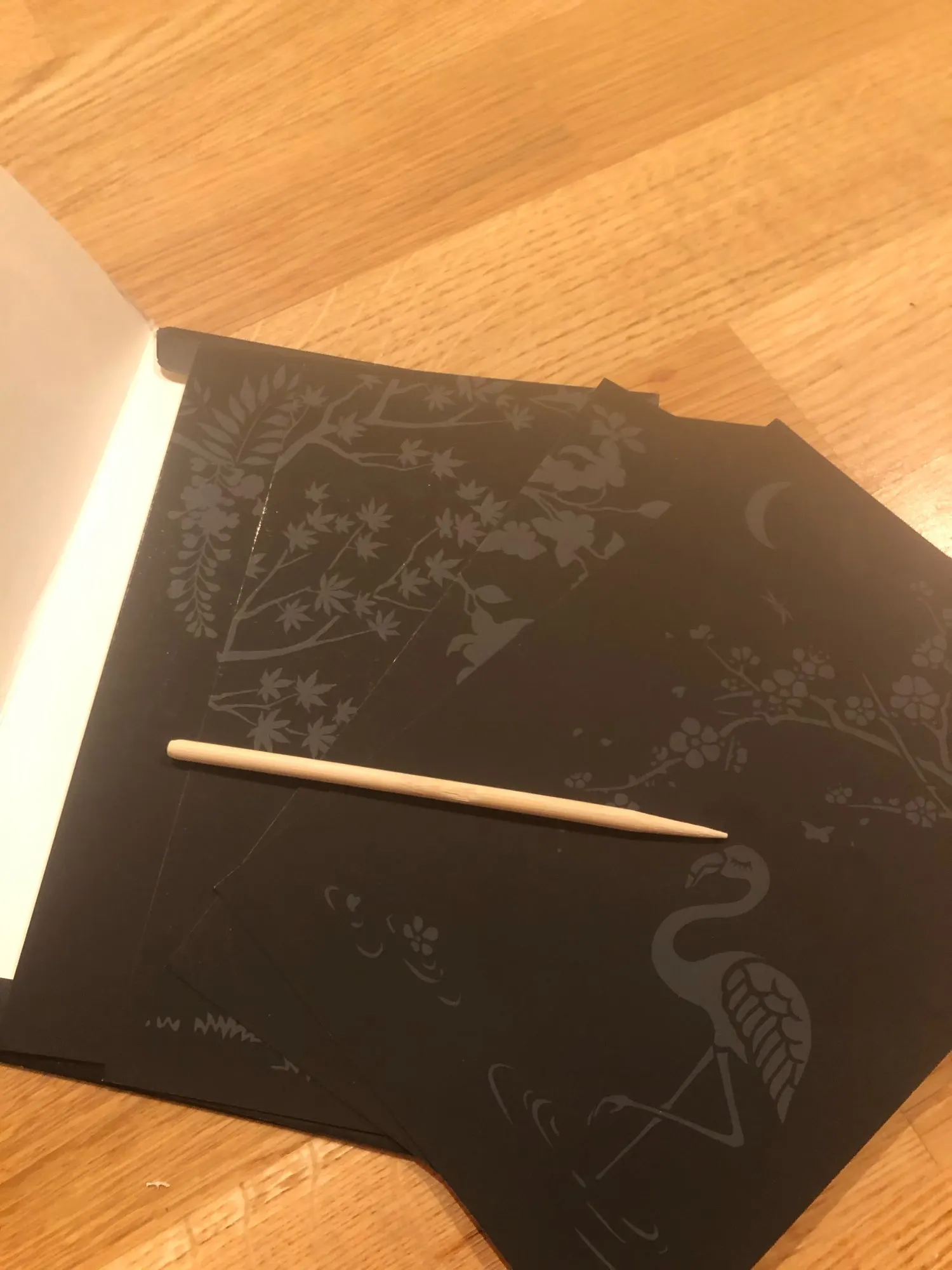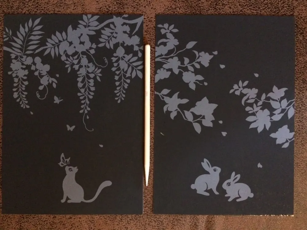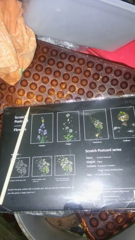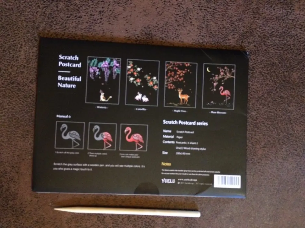 Идея очень красивая, чтобы пройти время, четыре карты поставляются с деревянной палкой, которая служит, чтобы поцарапать детали в сером дизайне.