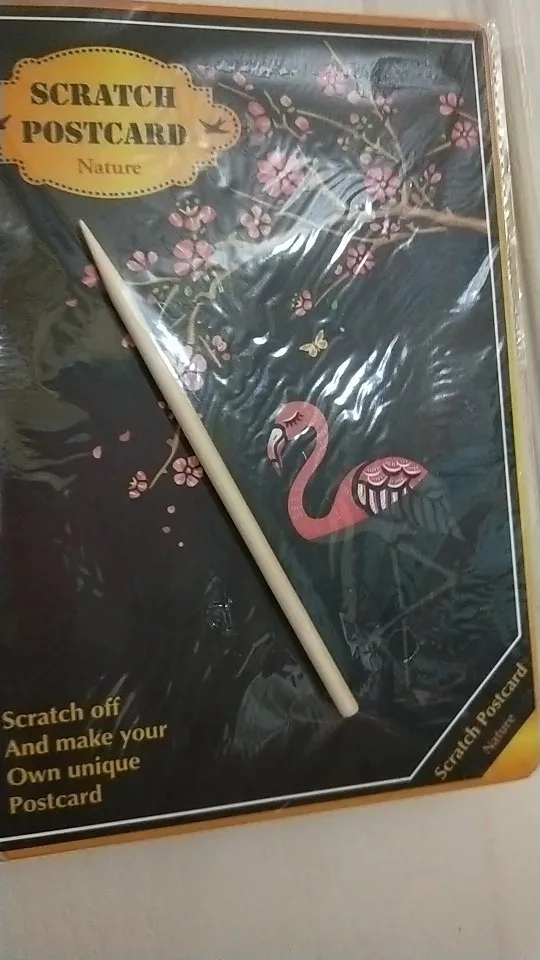 В Свердловскую область посылка пришла за месяц, ее объединили с другим заказом - это суперудобно! Карточки были упакованы в пупырку, никаких повреждений или замятий нет совершенно. Единственное, заказ делала в подарок, поэтому распаковать слюду и посмотреть, как карточки выглядять внутри возможности нет. В набор входят карточки-соскребыши в упаковке и деревянный стик