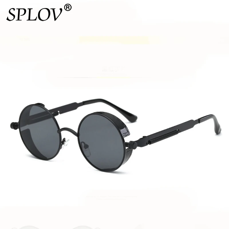 Солнцезащитные очки SPLOV в стиле стимпанк для мужчин и женщин, небольшие круглые винтажные брендовые дизайнерские солнечные очки в металлической оправе, для вождения