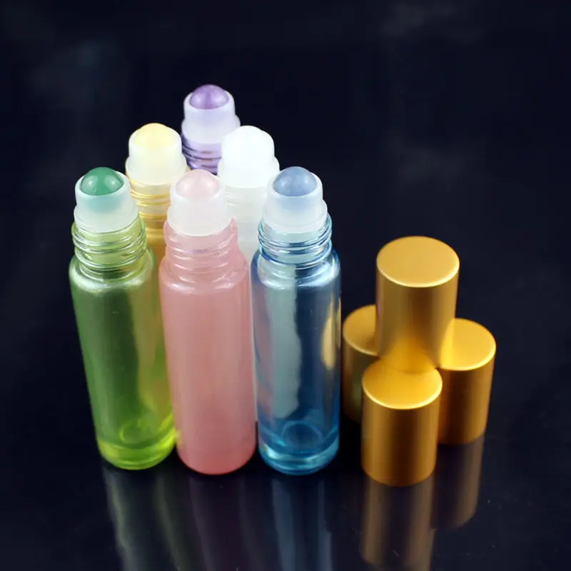 10 шт.лот толстый 10 мл стеклянный флакон для духов с шариком из нержавеющей сталидрагоценного камня стеклянная бутылка для эфирного масла