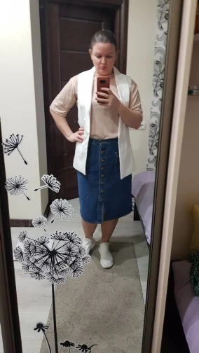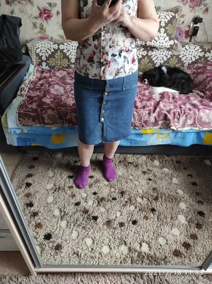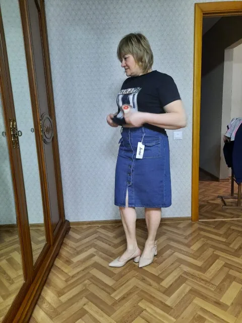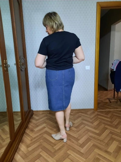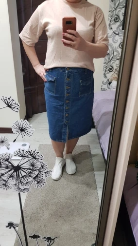 Юбка понравилась, даже сверх ожиданий. Джинса средней толщины, довольно мягкая. Швы ровные, запаха нет вообще. С фурнитурой посмотрим, пока на вид норм. Размер подошёл, выбирала по отзывам. В размерной сетке преувеличено немного. Правда, хотела, чтоб была свободнее и за счёт этого подлиннее. Ну, это дело вкуса, в целом выглядит хорошо. На мои от 85, об 105 облегает, можно сказать, впритык, но не в обтяг. На рост 164 чуть закрывает колени. Шло 3 месяца, сейчас это норма. Покупкой довольна, продавцу спасибо.
