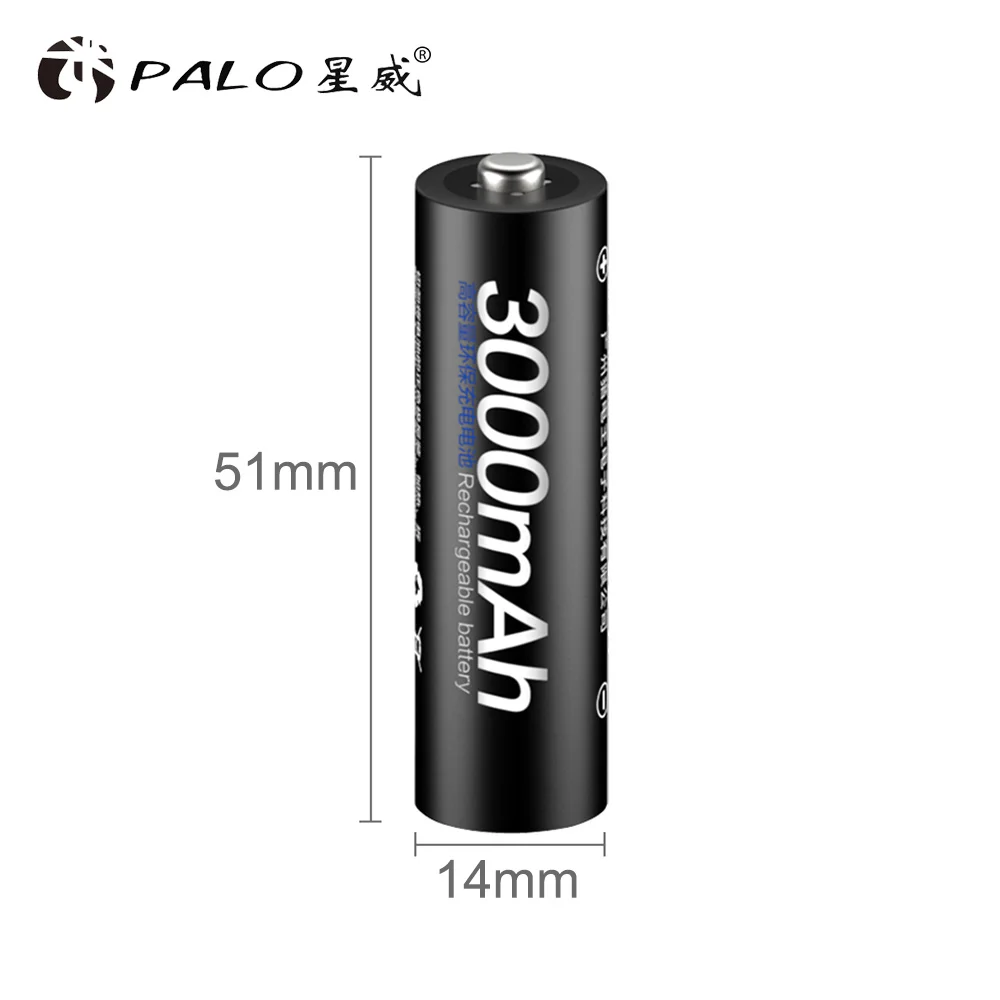 PALO 1,2 V aa 2a AA батарея 3000 mAh Ni-MH AA Аккумуляторная батаре...