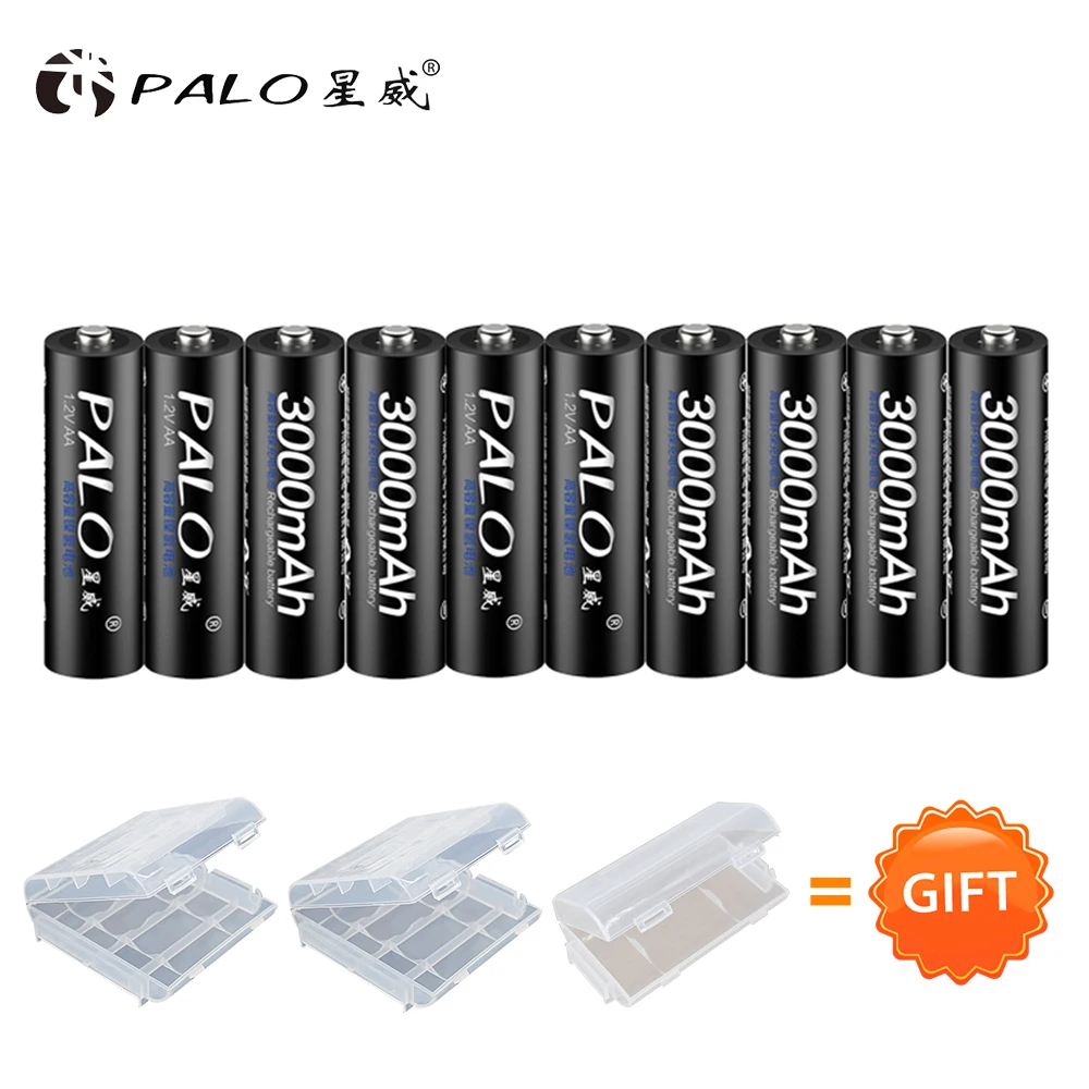 PALO 100% оригинал, 10 шт., высококачественные Ni-MH 3000 мАч, аккумуляторные батарейки AA 1,2 В, 2 А, аккумуляторная батарея AA для игрушек для камеры
