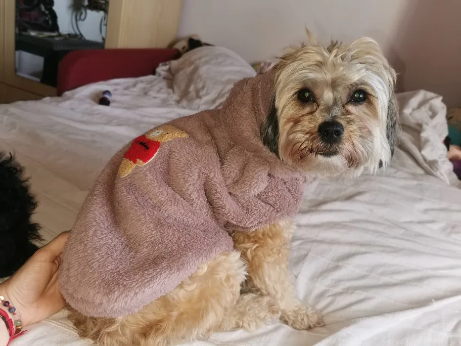 красивая,мягкая кофточка ))))покупала сфинксу слетает ,хотя размер не большой(а в опщем красота для собаки или пушистого кота