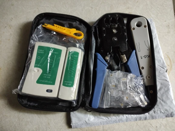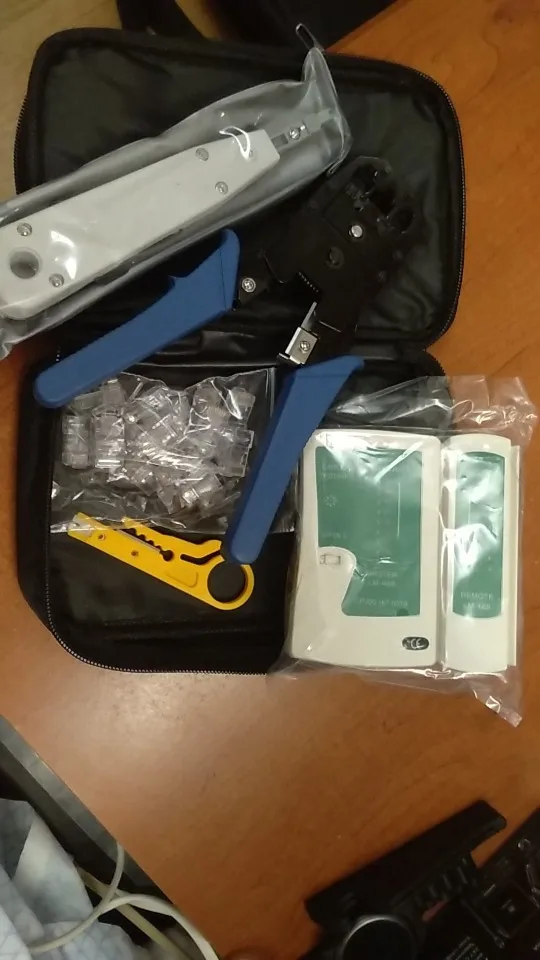 Комплект полный. Не всем инструментом пользовался. Нож у обжимного инструмента следует немного подровнять, используя отвертку и гаечный ключик.