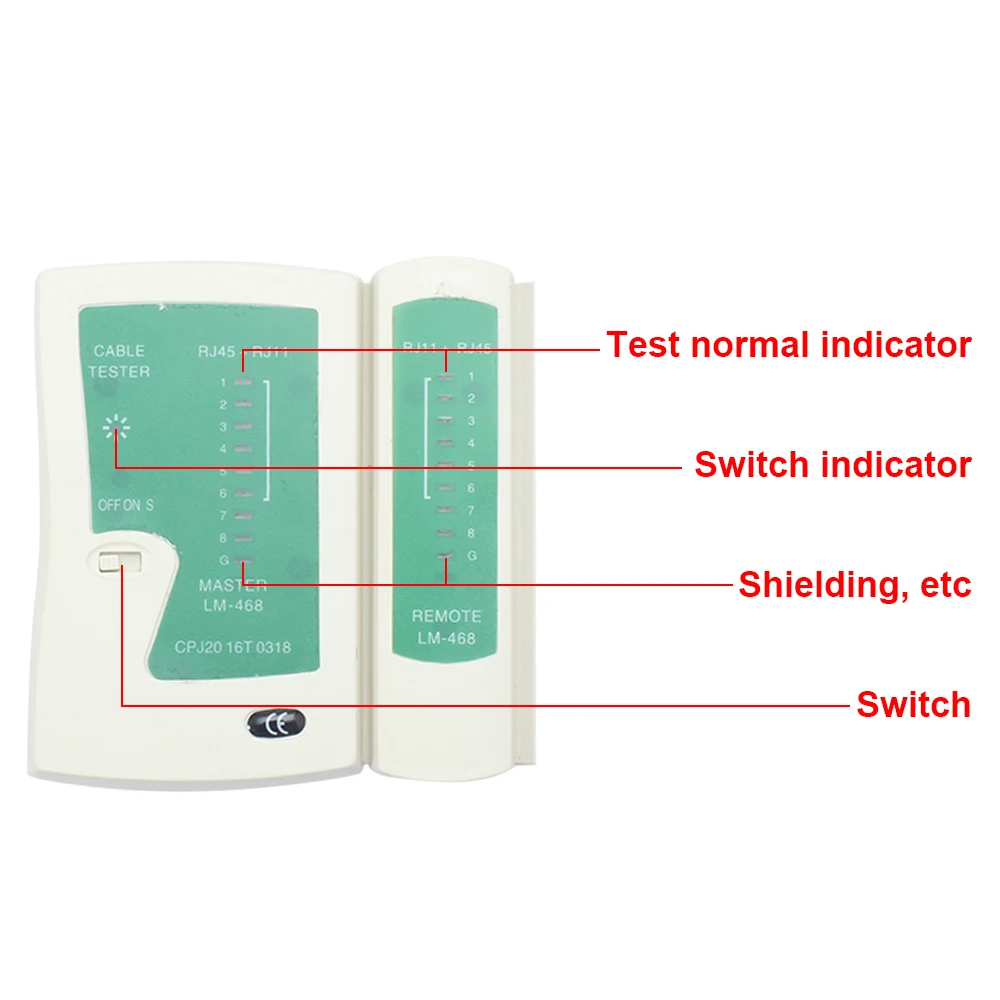 Тестер сетевого кабеля Ethernet RJ45, обжимной инструмент для RJ45, пробойник RJ11 Cat5 Cat6, детектор проводов 8P8C RJ45