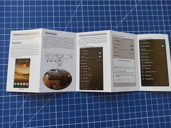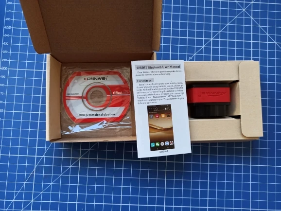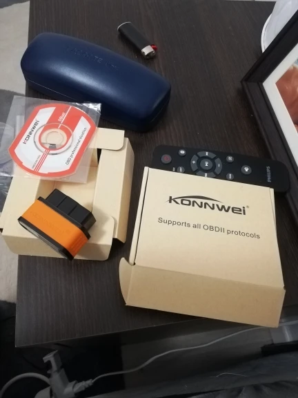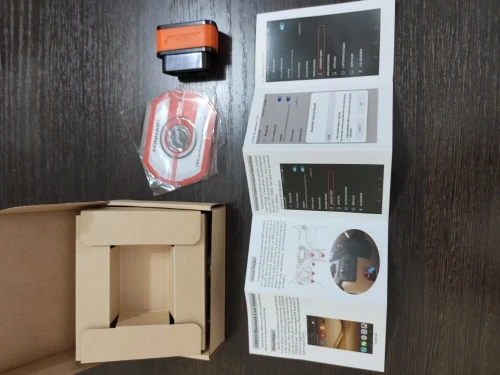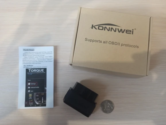 Заказ пришёл через 20 дней после оформления. Товар прибыл целый и невредимый. Адаптер отличный! Собран добротно - ничто не болтается и не гремит. Изготовлен из весьма качественной пластмассы. На лицевой стороне расположены индикаторы питания, сопряжения и статуса работы. Там же расположена кнопка включения/выключения питания - очень удобная функция, позволяет не выдёргивать адаптер с гнзда, когда он не используется, тем самым экономя заряд батареи. В комплекте небольшая инструкция на английском и компакт-диск. Инструкцию не переводил, но, по картинкам понятно, что это руководство не по самому адаптеру, а инструкция по работе с программой TORQUE. Содержание компакт-диска не смотрел, но подозреваю, что на диске та самая упомянутая программа. Я же для диагностики использовал другой софт, поскольку о TORQUE не самые лестные отзывы! Существует много аналогичных программ как платных, так и бесплатных. Желающие легко могут их найти. В целом OBD адаптер отличный и полностью работоспособный!