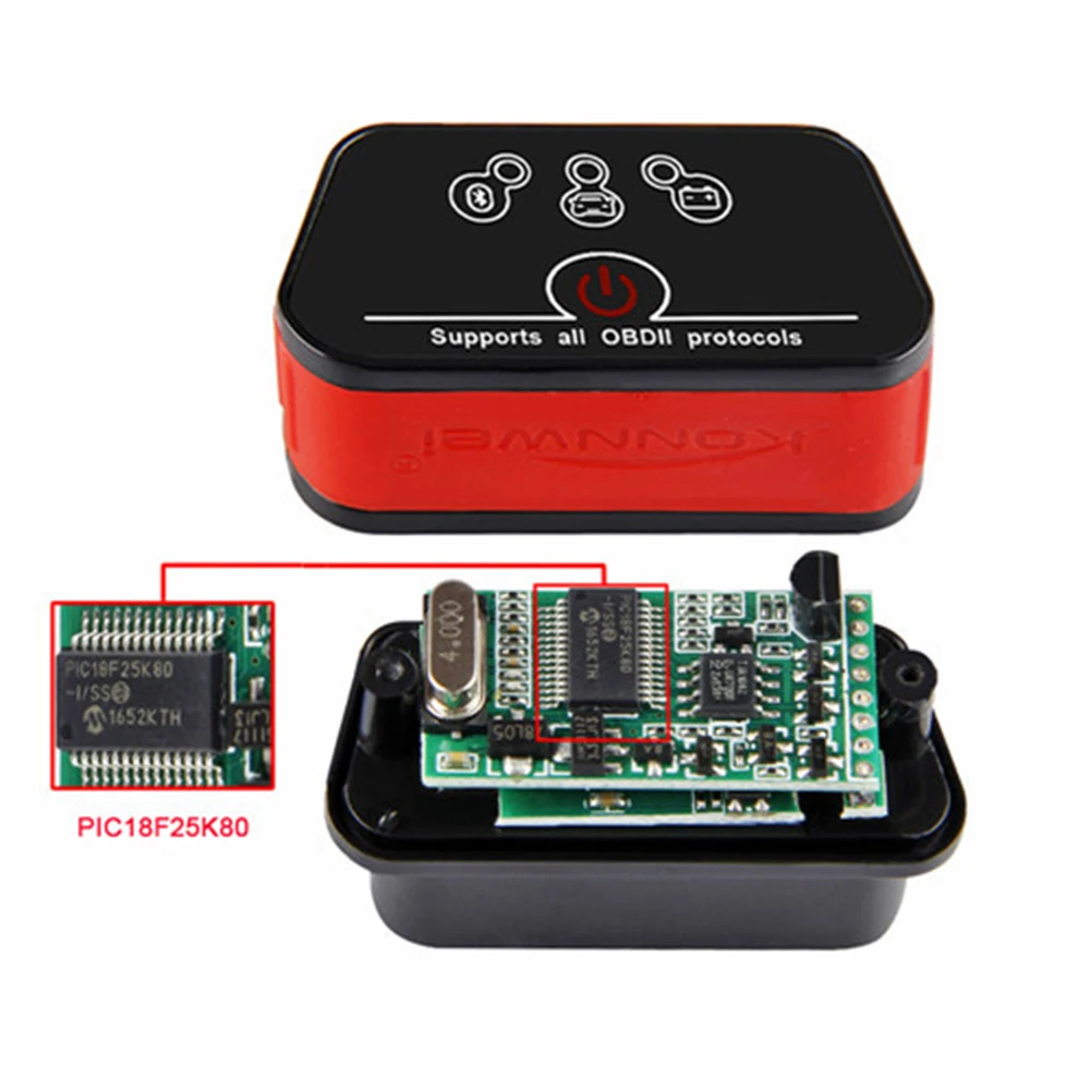 Автомобильный сканер KONNWEI с поддержкой Bluetooth, ELM327, pic18f25k80, V1.5, автомобильный диагностический сканер Obd 2