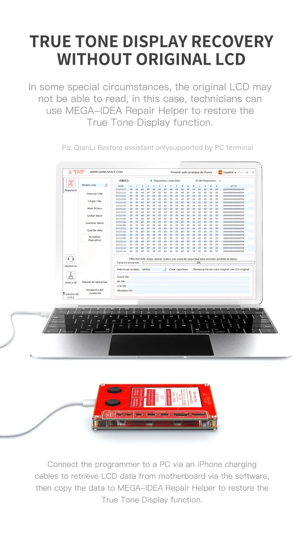 Программатор Qianli Mega-Idea для ремонта ЖК-экрана iPhone XR XSMAX XS 8P 8 7P 7 с вибрациейсенсорнымфоточувствительным ремонтом