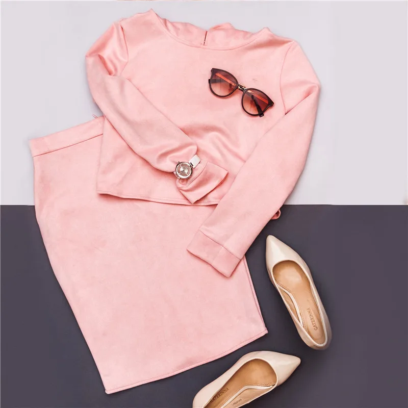Женский замшевый комплект Colorfaith, однотонный свитшот с капюшоном и мини-юбка-карандаш с разрезом, Осень-зима 2021, WS0577