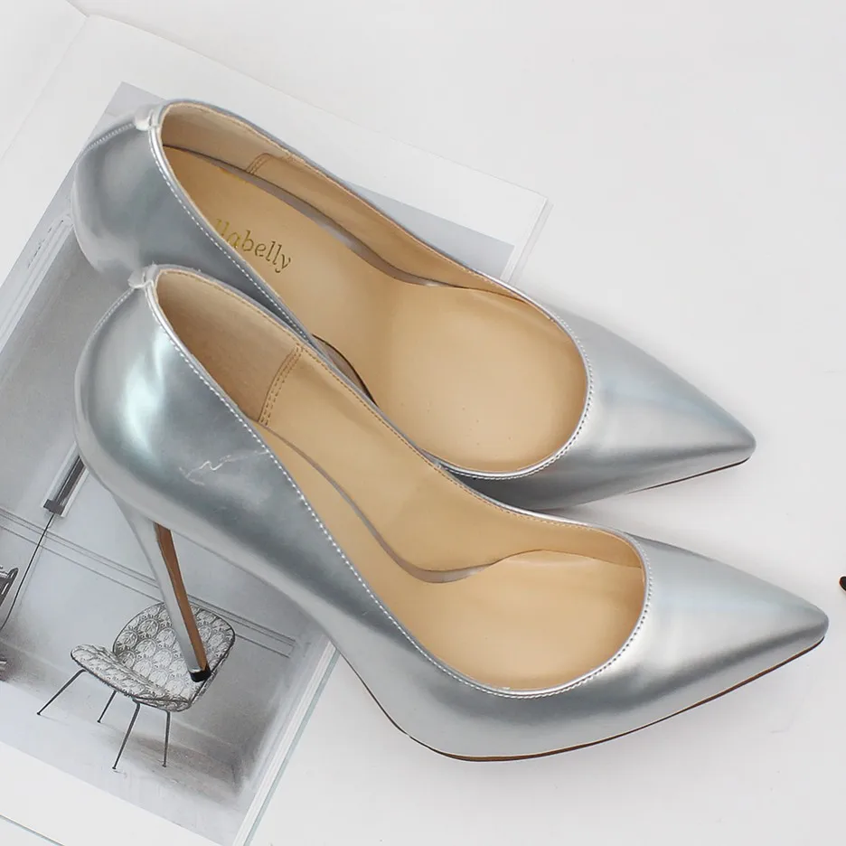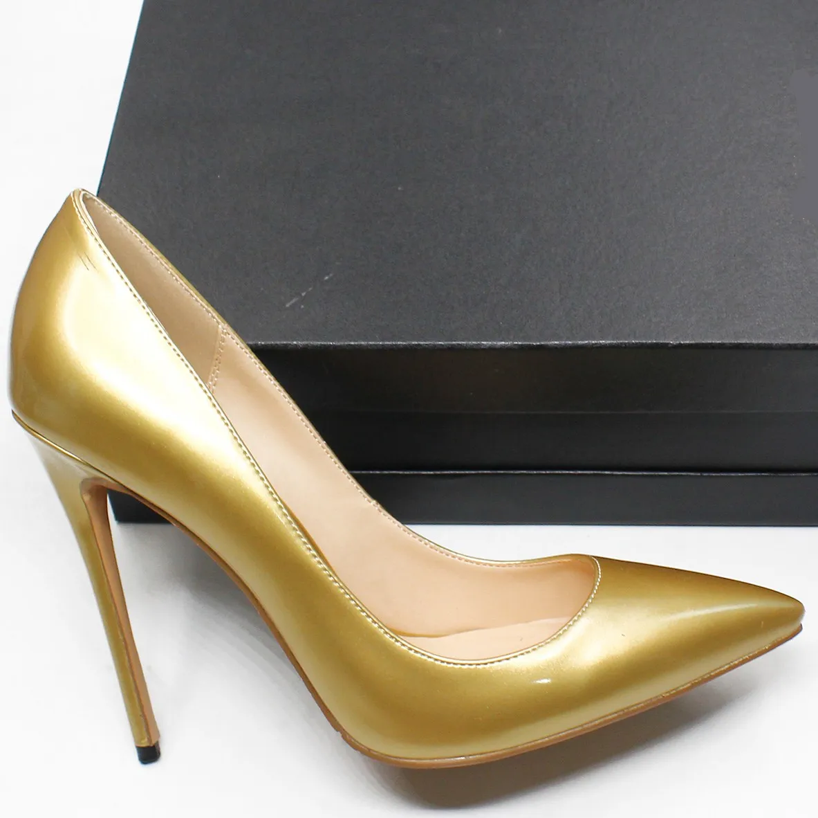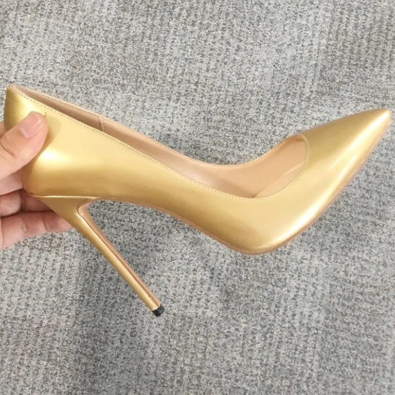 gold genuine leather pumpsOffice Work Women Pumps Fashion 12cm Thin High Heels Genuine Leather Pointed Toe Classic Gold Sliver Ladies Shoes Big Size