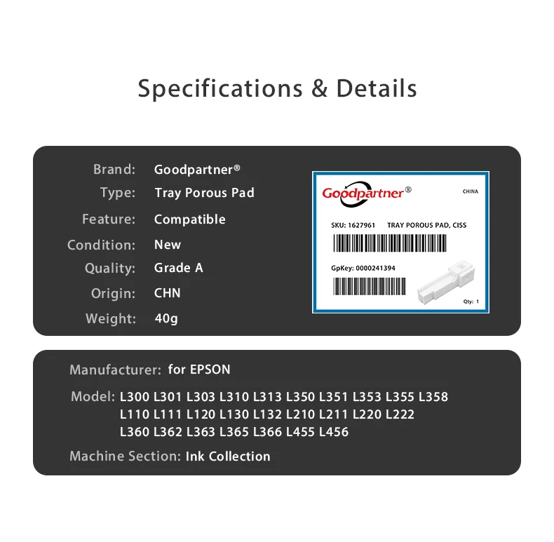 1X1577649 губка для резервуара для отработанных чернил для EPSON L300, L301, L303, L310, L350, L351, L353, L355, L110, L210, L211, L312, L361, L364, L366
