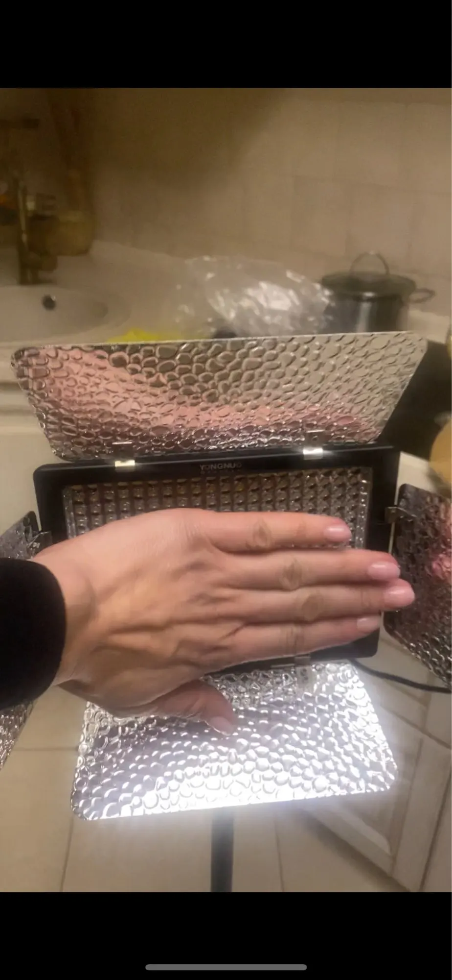 доставка заняла месяц. Начиталась отзывов, что аккумулятор держит 10-15 минут,так что решила протестировать. Поставила заряжать впервые раз часа на три, но видимо до конца не зарядила, потому что интикатор заряда оставался красным. На полной мощности лампа держалась примерно 1,5 часа. Ночью зарядила полностью до зелёного индикатора. Ещё не тестила, но результатом довольна уже. Немного не качественно проклеяны отражатели, или погнуты слегка, но на качестве съёмки это не отображается - не критично. Про софт бокс все нормально, вот только на нем пришиты липучки, а к чему эти липучки крепить не ясно было. Хорошо, что была в запасе у меня лента похожая. отражатели фиксирую между липучек, насчёт этого держится софт бокс. Фото с дополнительными липучками и селфи на минимальной мощности лампы на телефоне. товаром довольна, надеюсь прослужит долго.