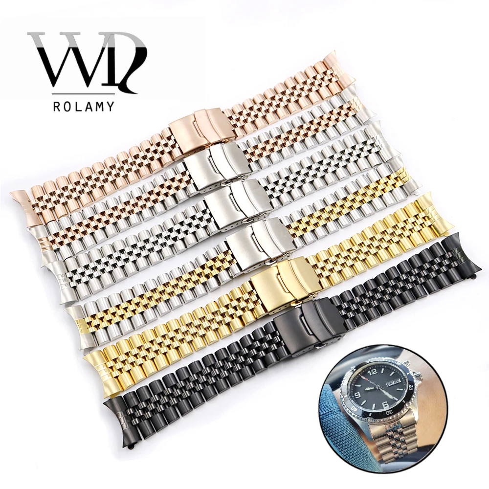Ремешок Rolamy для часов 19 20 22 мм, полый изогнутый конец, сплошной винт с заменой звеньев, браслет для Dayjust, оптовая продажа, ремешок для часов