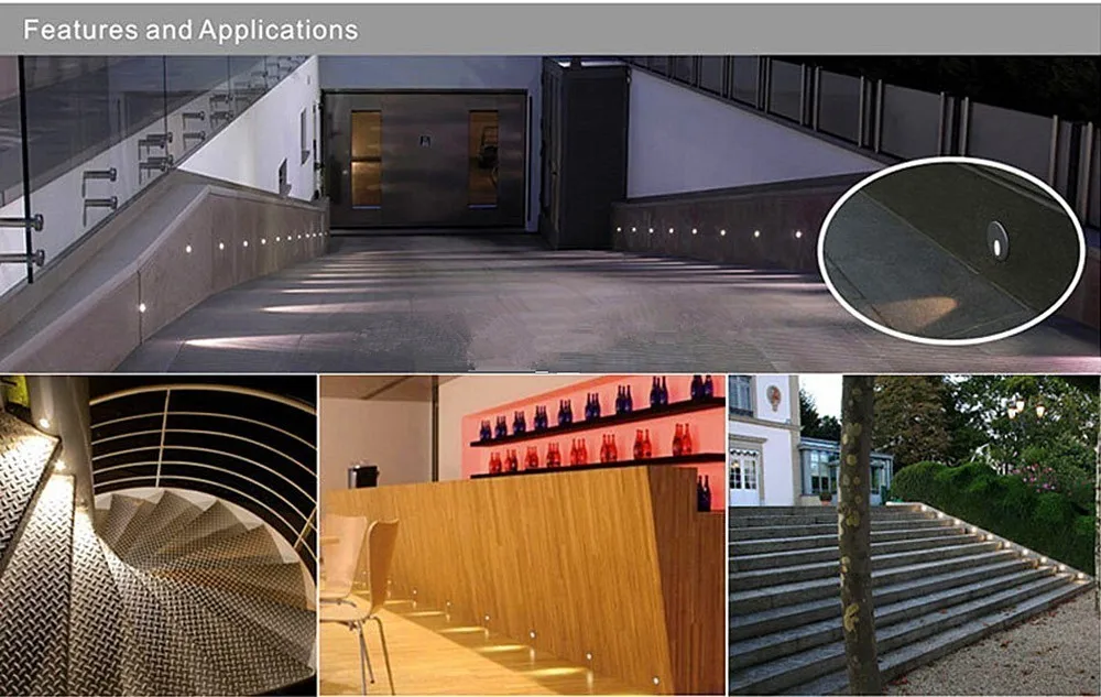 1. Светодиодный лестничный светильник мощностью 1 Вт с IP67, широко используется для множества видов наружного освещения дверей, таких как входное освещение в упаковке, босветильник дороги, светильник лестницы, напольное освещение для дорожки, соединительное освещение, И другие уличные лампы Venus Light ing