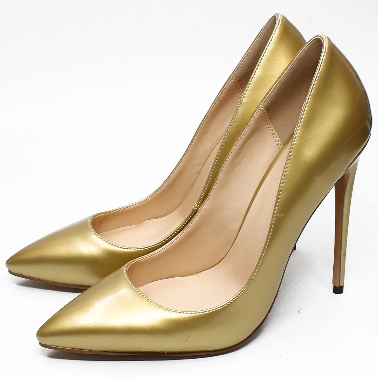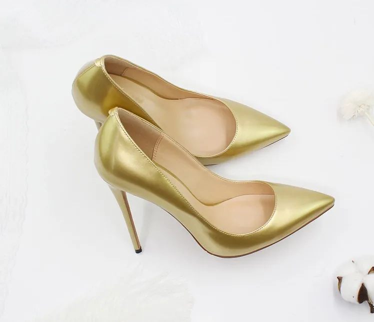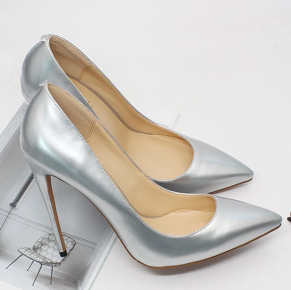 Элегантный золотистого и серебристого цвета обувь на высоком каблуке; Женские туфли-лодочки с острым носком из натуральной кожи; Свадебная вечеринка платье обувь Размер 4-13,5 C005B