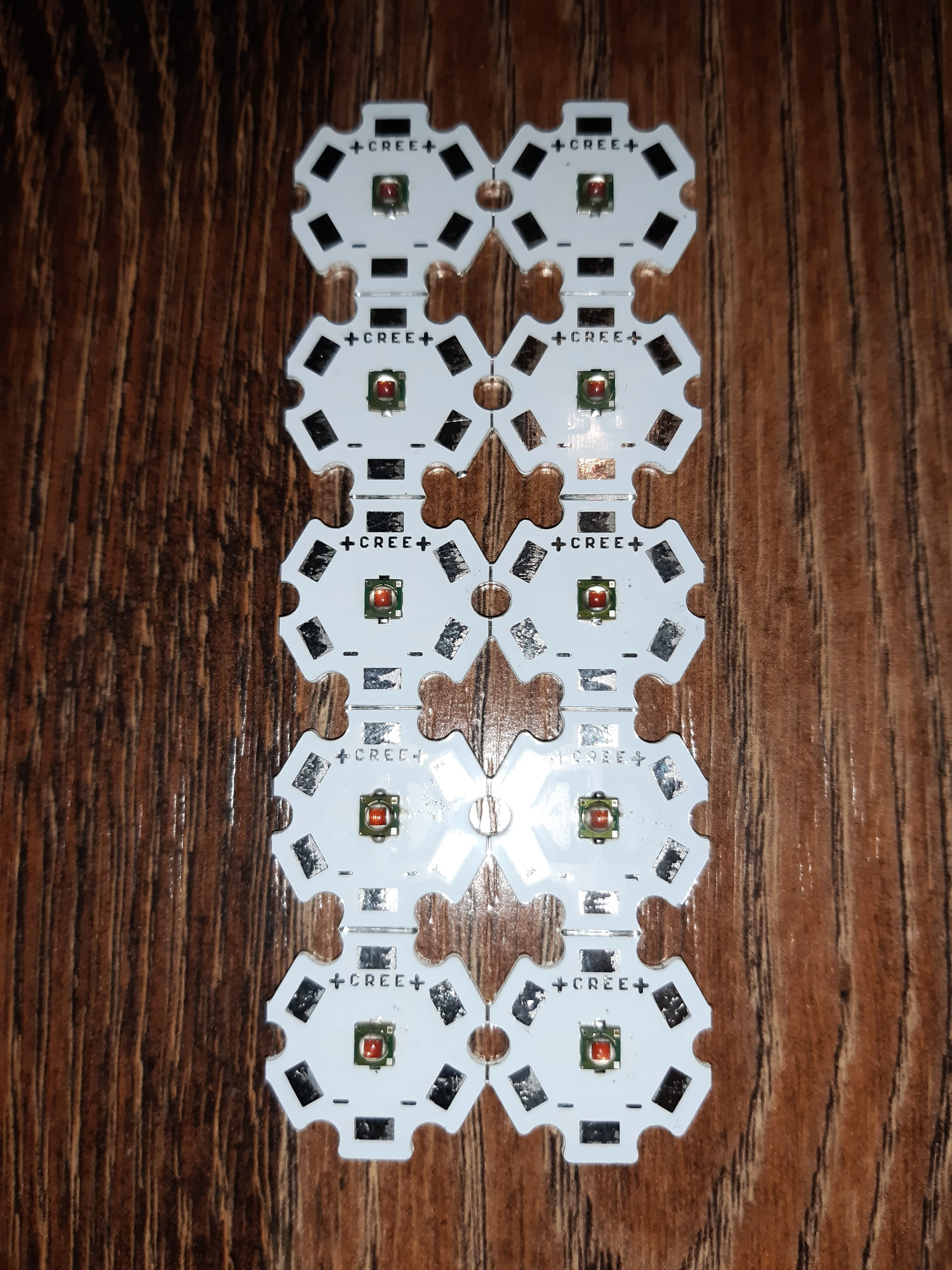 Красивые красные светодиоды на достаточно маленьких досках. Надеемся на более короткую длину волны, но нет спектрометра, чтобы подтвердить, что это не 625 нм. Рекомендуется, если вам подходит более 650 нм.