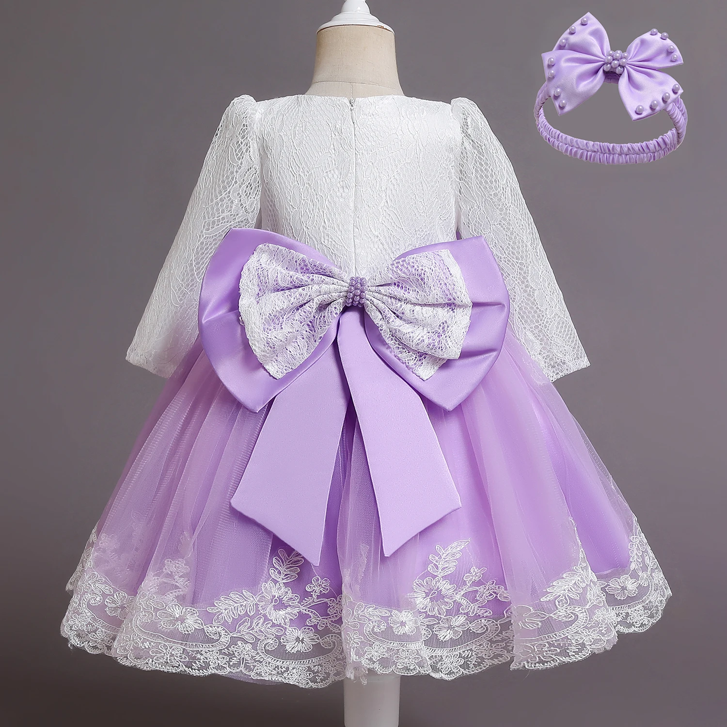 Детское платье с длинным рукавом, белое, на возраст 1 год
