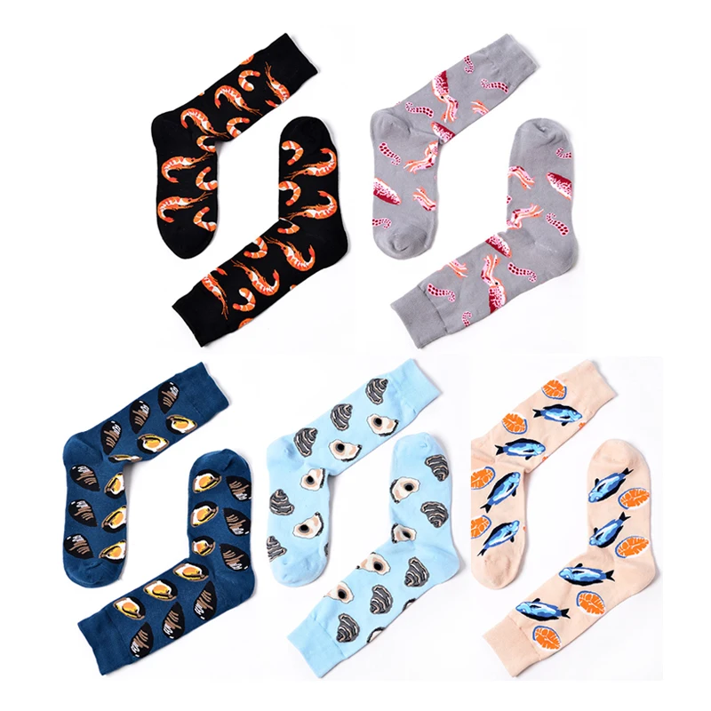 Arctic креветки устрицы кальмары моллюски осьминоги морепродукты Личность майка для мужчин короткий рукав смешные носки Короткие хлопковые носки длиной до щиколотки для пар Премиум счастливые носки