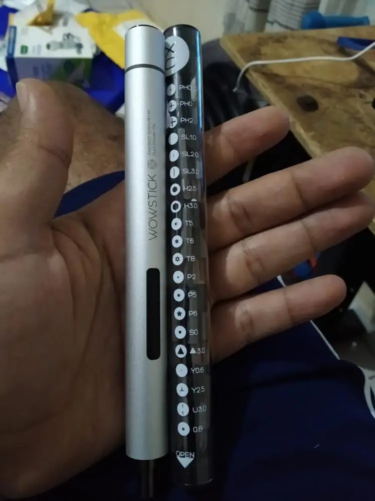 Отличный инструмент. Перед покупкой посмотрел видоеобзоры на YouTube и не пожалел о покупке. Материал отвертки - матовый, приятный на ощуп, а значит не проскальзывает в руке. Проверил все биты (насадки) - отлично фиксируются магнитом, не болтаются и не выпадают. Материал биты очень прочный. Wowstick экономит массу времени при откручивании/закручивании. В комплекте был чехол для хранения/транспортировки Wowstick и набора бит. Материал хороший, мягкий, но запах от него очень неприятный. Это маленький недостаток, который вообще не сказывается на качестве инструмента. Кнопка переключения режима закручивание/раскручивание (инверсия) показалась немного чувствительной, поэтому возможны случайные нажатия Моя оценка 4,9/5,0