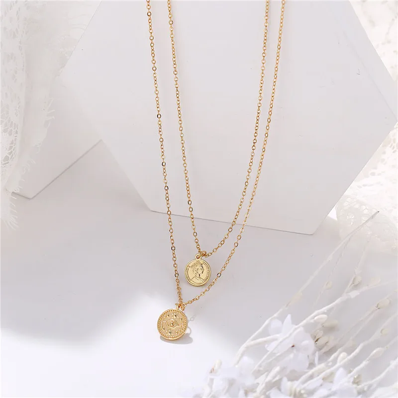 Винтажное резное ожерелье-монета для женщин, модное ожерелье-медальон золотого цвета, многослойное ювелирное изделие в стиле бохо, Длинные ожерелья с подвесками