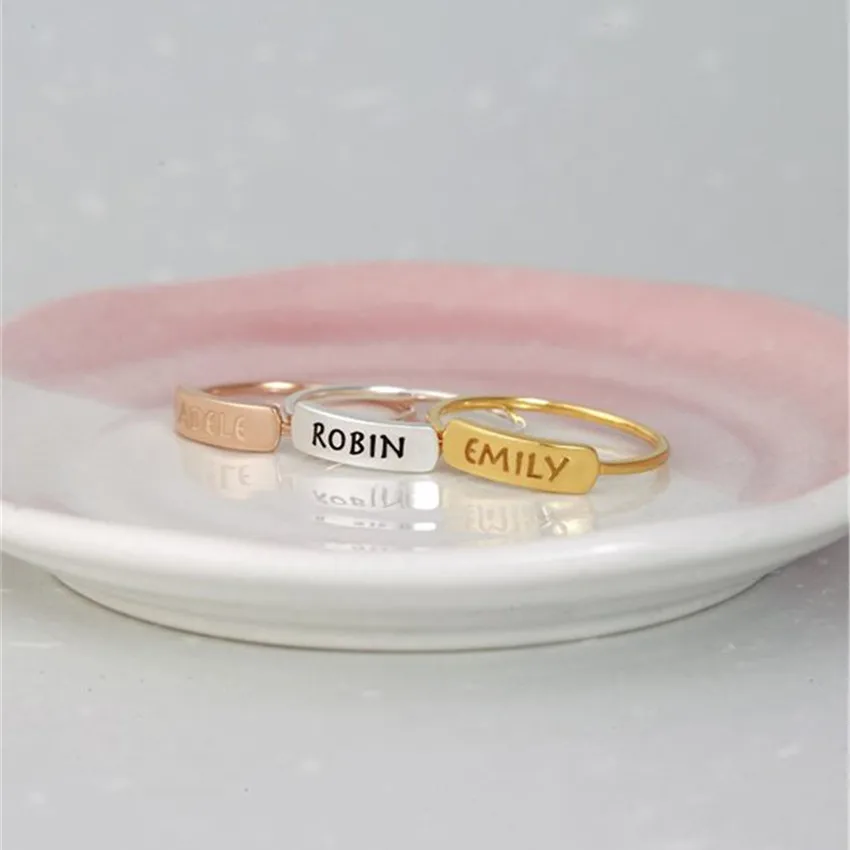 Персонализированное кольцо ручной работы с гравировкой имени, ювелирные изделия из нержавеющей стали, розовое золото, штабелируемые барные кольца для женщин, подарок для вечевечерние