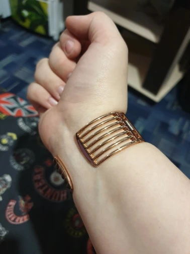 очень долгая доставка, два месяца! товар соответствует описанию, браслет для тонкой руки.