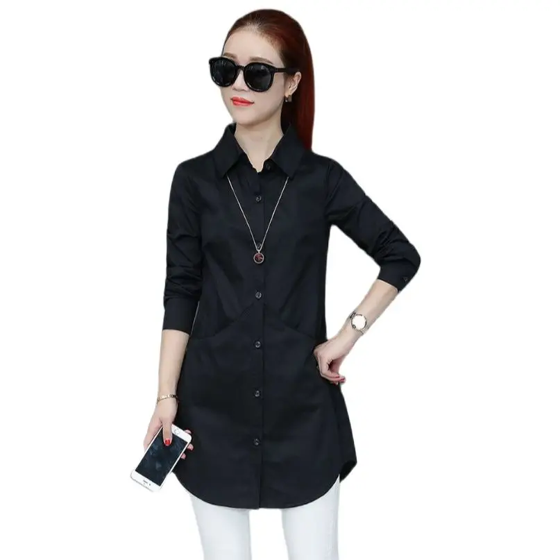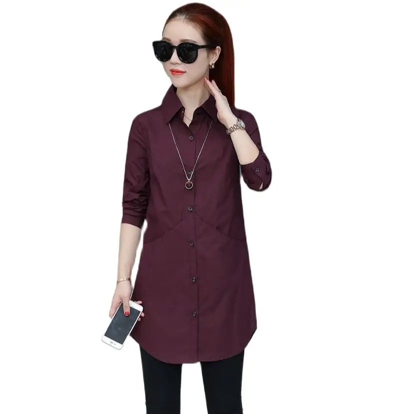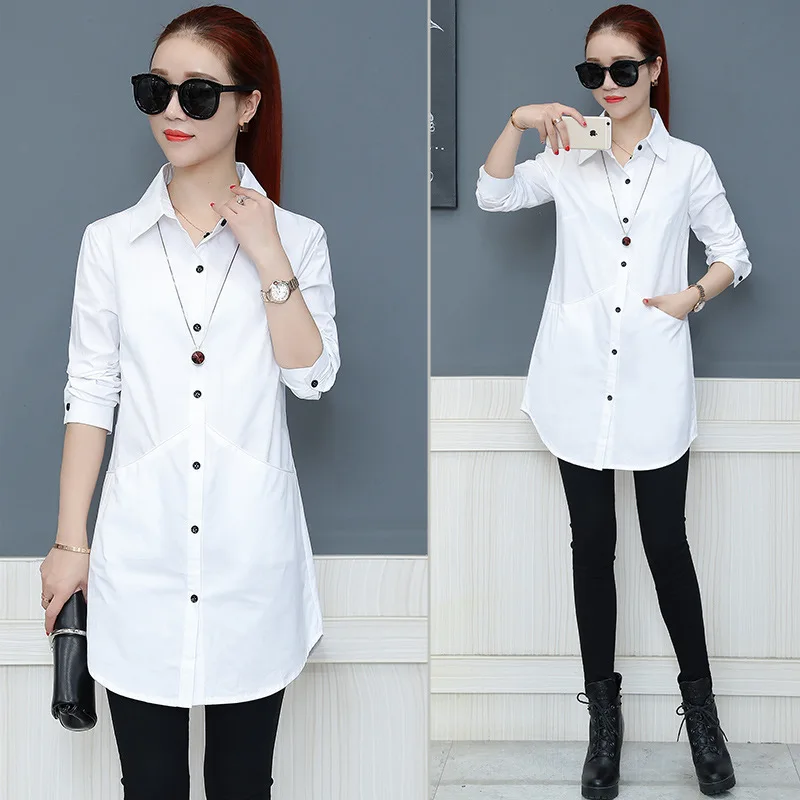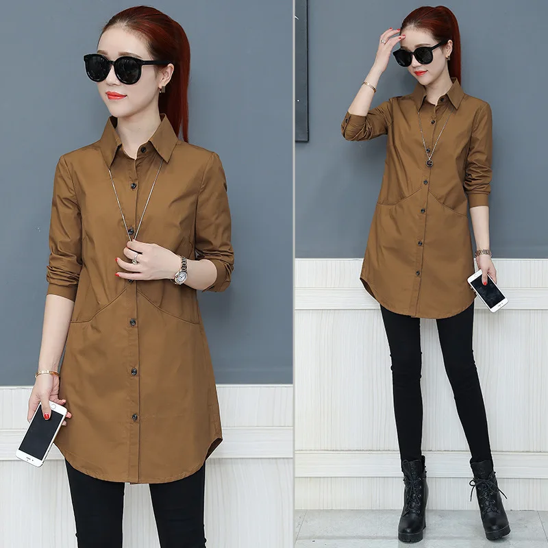 Женская шифоновая блузка, длинная Повседневная Блузка с отложным воротником, весна-осень, DF1703, женские блузки рубашки