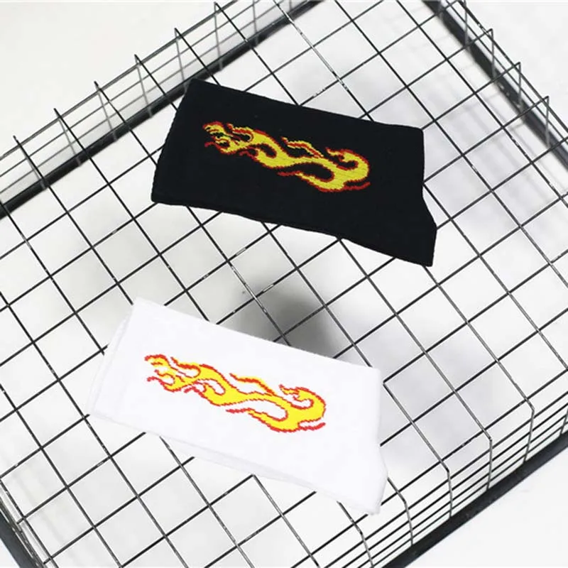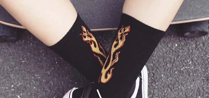 Носки мужские для скейтборда, хлопок, высокие, в стиле хип-хоп, с огненным пламенем, в европейском и корейском стиле, Харадзюку, белые черные