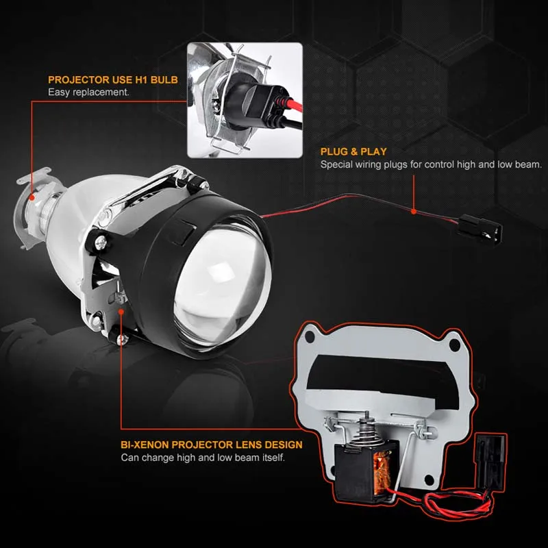 Биксеноновые линзы проектора, 2,5 дюйма, в черном и серебристом кор...
