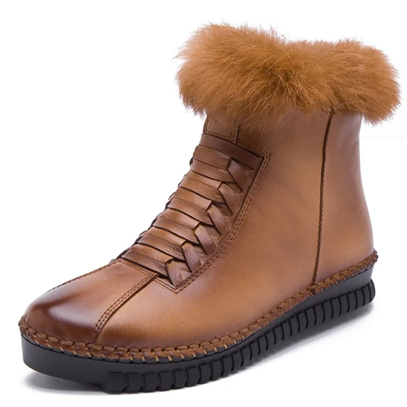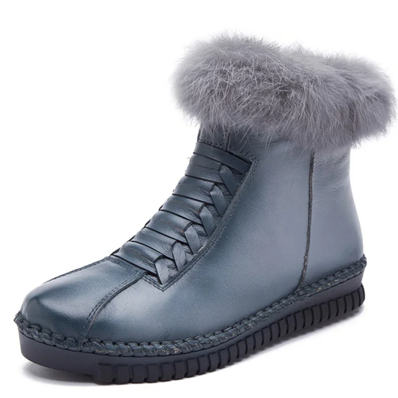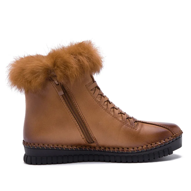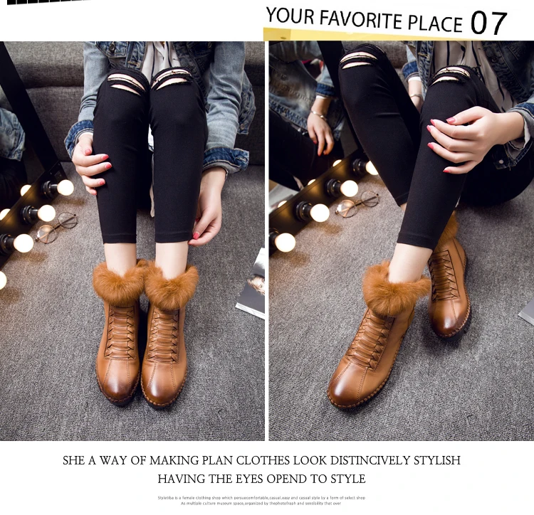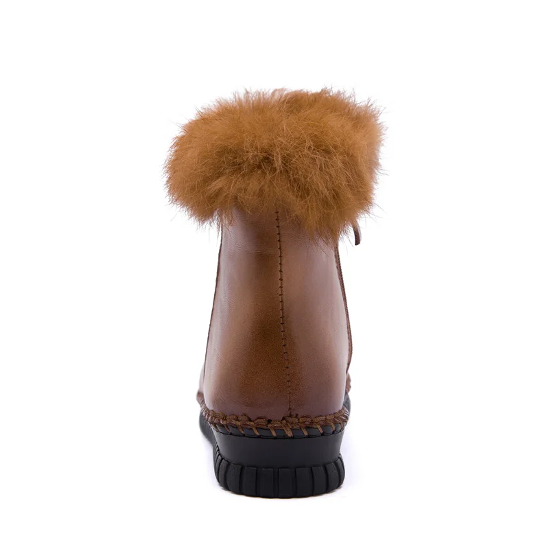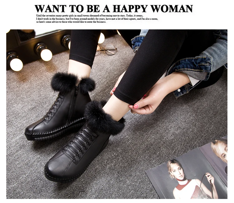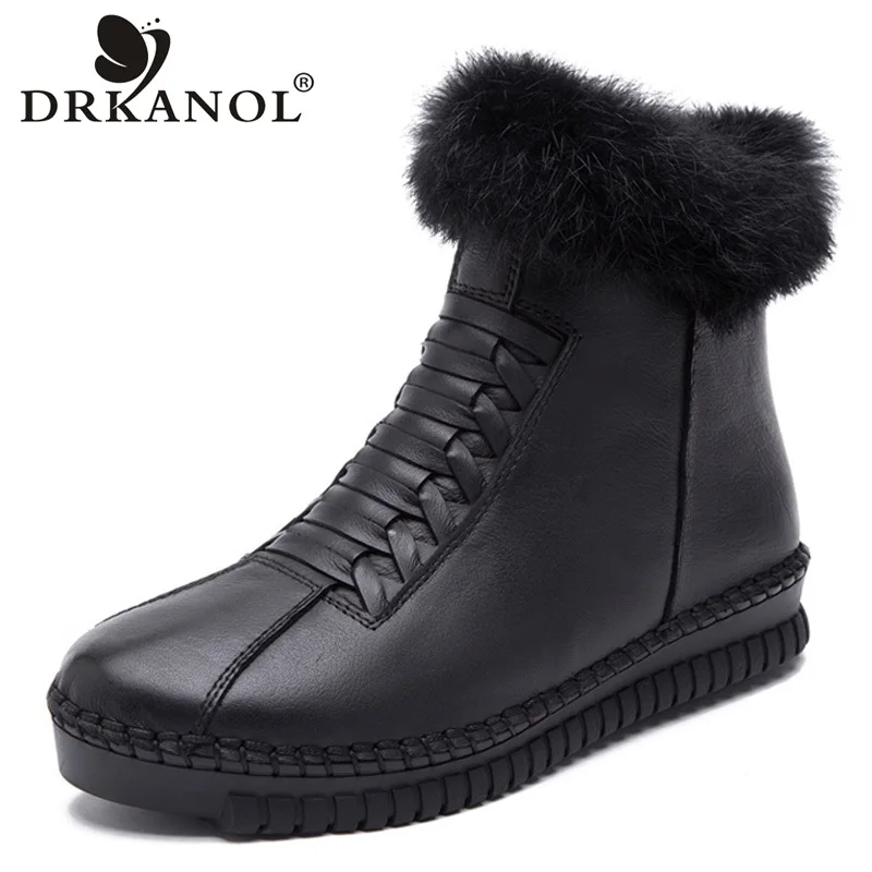 DRKANOLженские ботинки ручной работы из натуральной кожи; Ботильоны на плоской подошве с кроличьим мехом; Женские зимние ботинки; Теплая Повседневная обувь; Botas Mujer