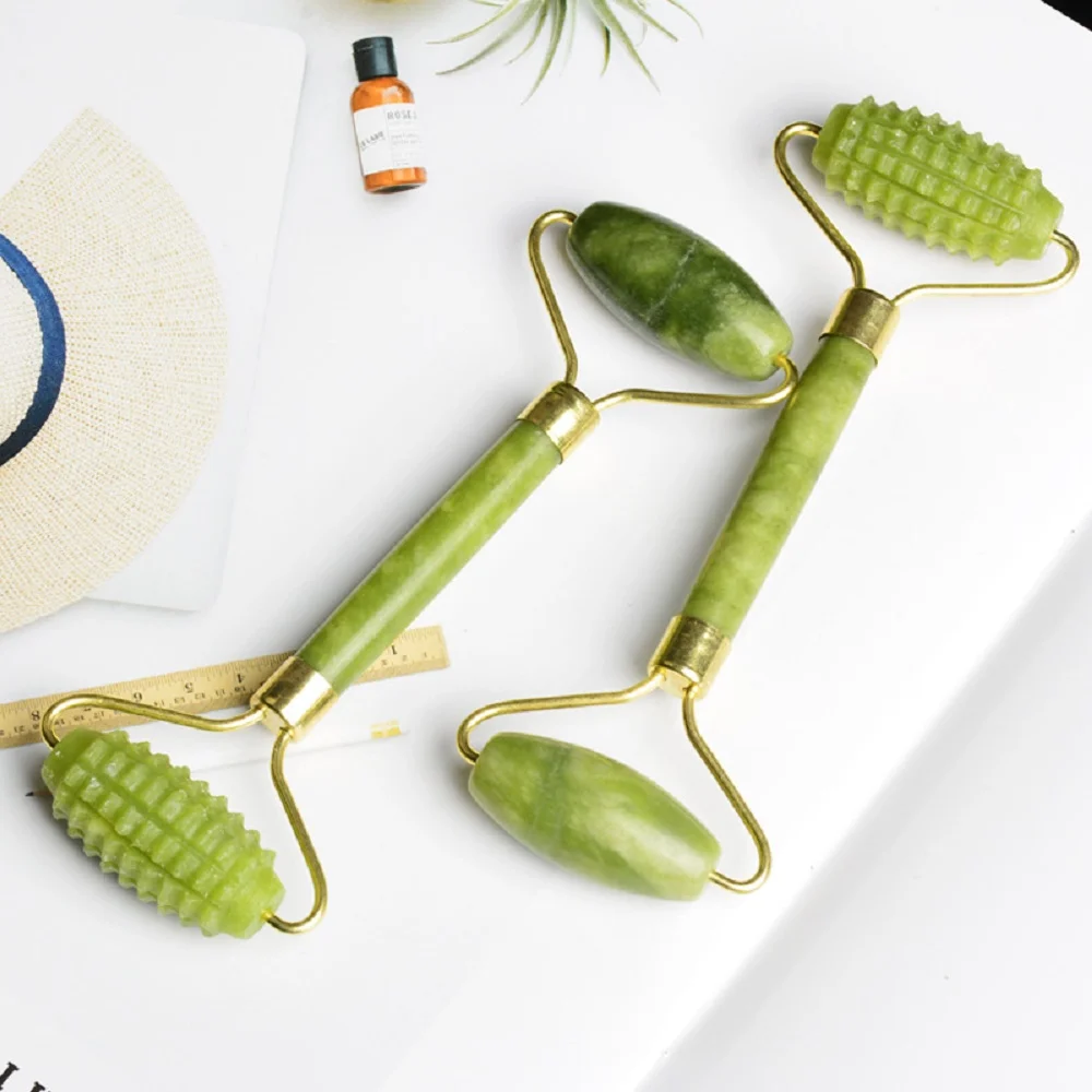 2 шт., Нефритовый массажный ролик для лица, с розовым кварцем