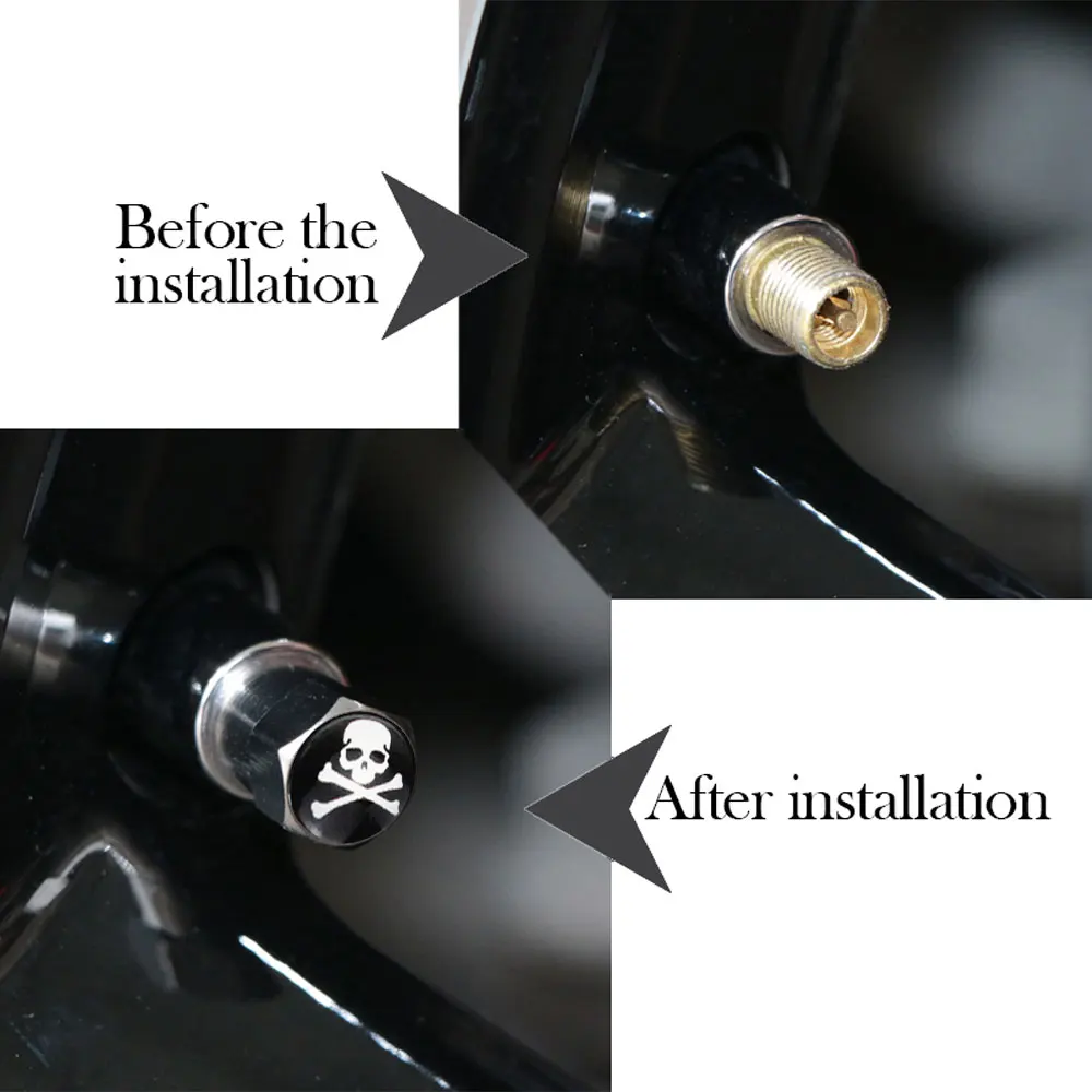 4. Простая установка: легко установить и удалить, только колпачки на шток клапана шины, затем винт. Может заменить оригинальную крышку клапана шины, а также показать красоту характеристики шины.