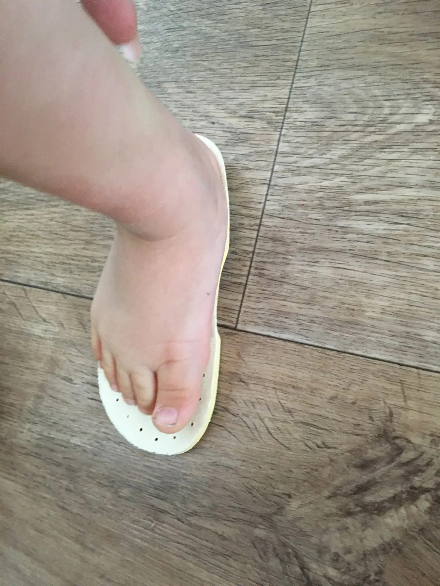 Удобные, легко моются , при надевании не деформируются., ножка ребенка не потеет . Немного маломерят .