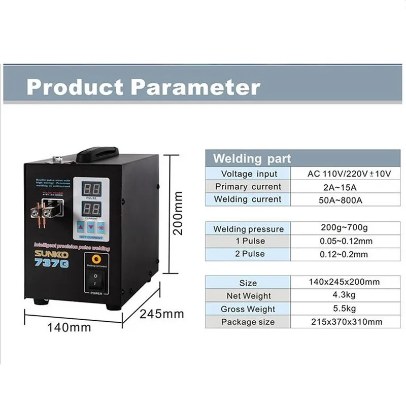 SUNKKO 737G 18650 литиевая батарея точечная сварочная машина 1,5 кВт светодиодный светильник точечная сварочная машина для точечной сварки импульса