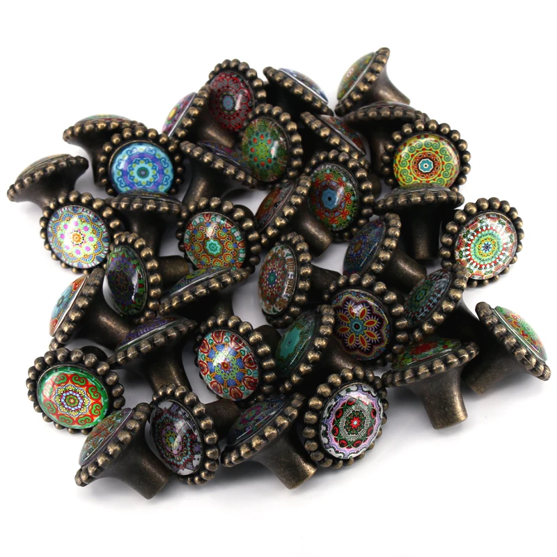 Винтажные бронзовые для выдвижных шкафчиков ручки для обувного шкафа, цветные стеклянные ручки для кухонного шкафа, шкафа, двери, 1x42 мм