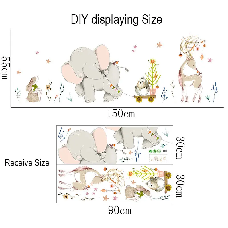 Настенная Наклейка с мультяшным слоном для детской комнаты, домашний декор, плинтус, большая художественная Настенная Наклейка для детской комнаты, плакат