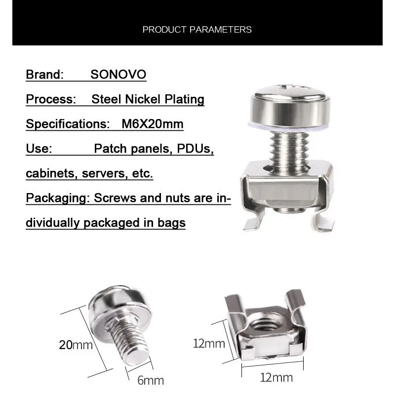 Топ Корона 100 шт. никелированные стальные винты для шкафа женские гайки для сиденья M6 * 20 мм компьютерная коммутационная панель Сетевые Аксессуары сервер PDU