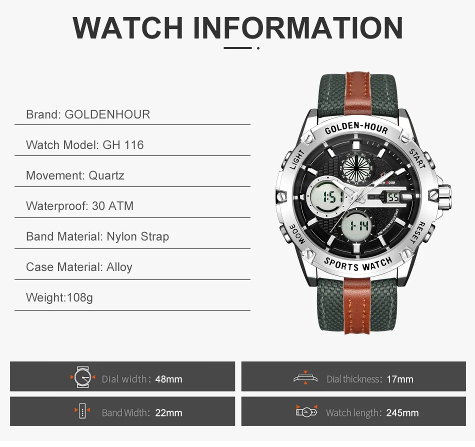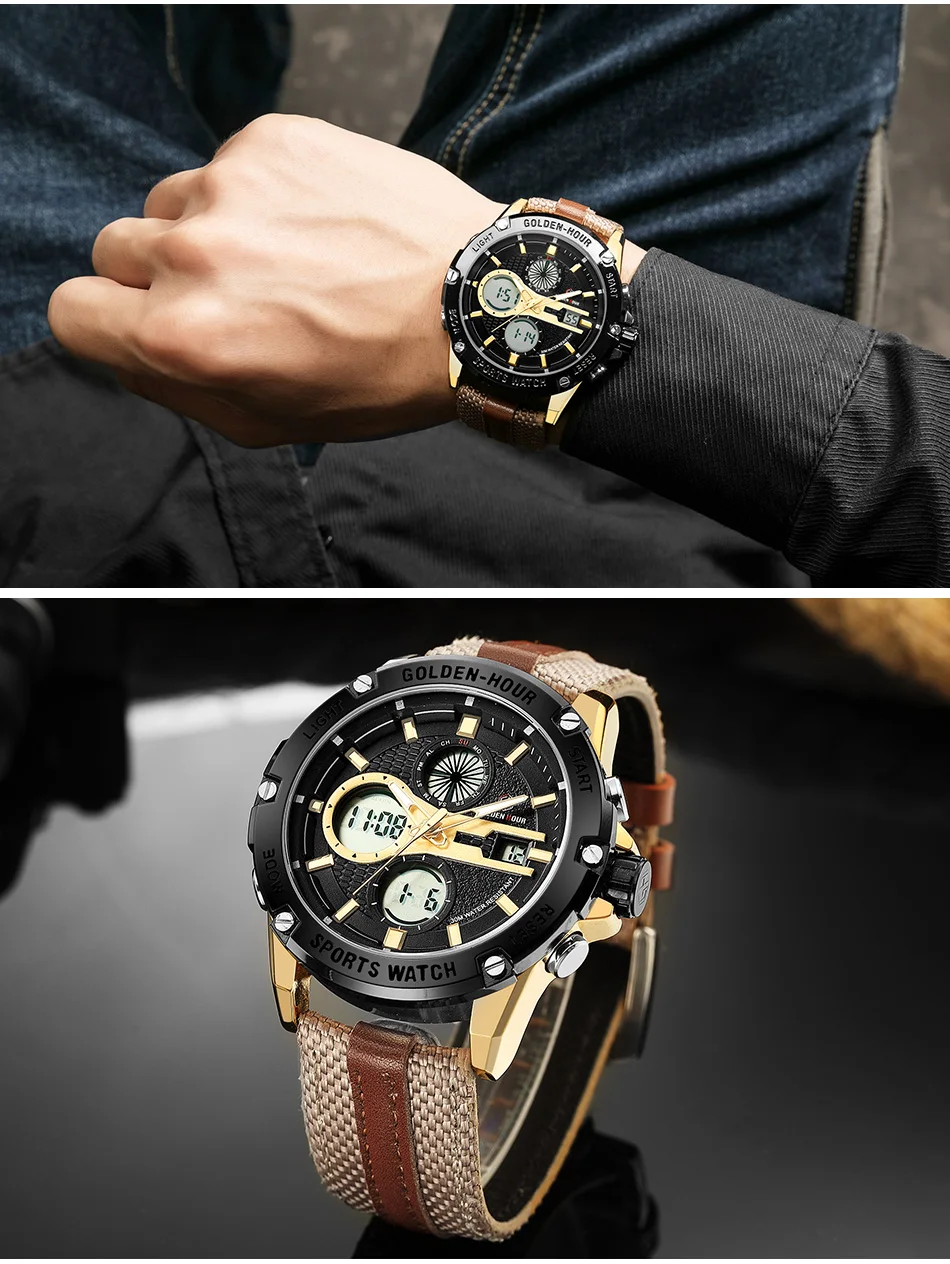 Мужские модные спортивные аналоговые цифровые часы GOLDENHOUR, водонепроницаемые армейские часы со светодиодным дисплеем, военные наручные часы для мужчин