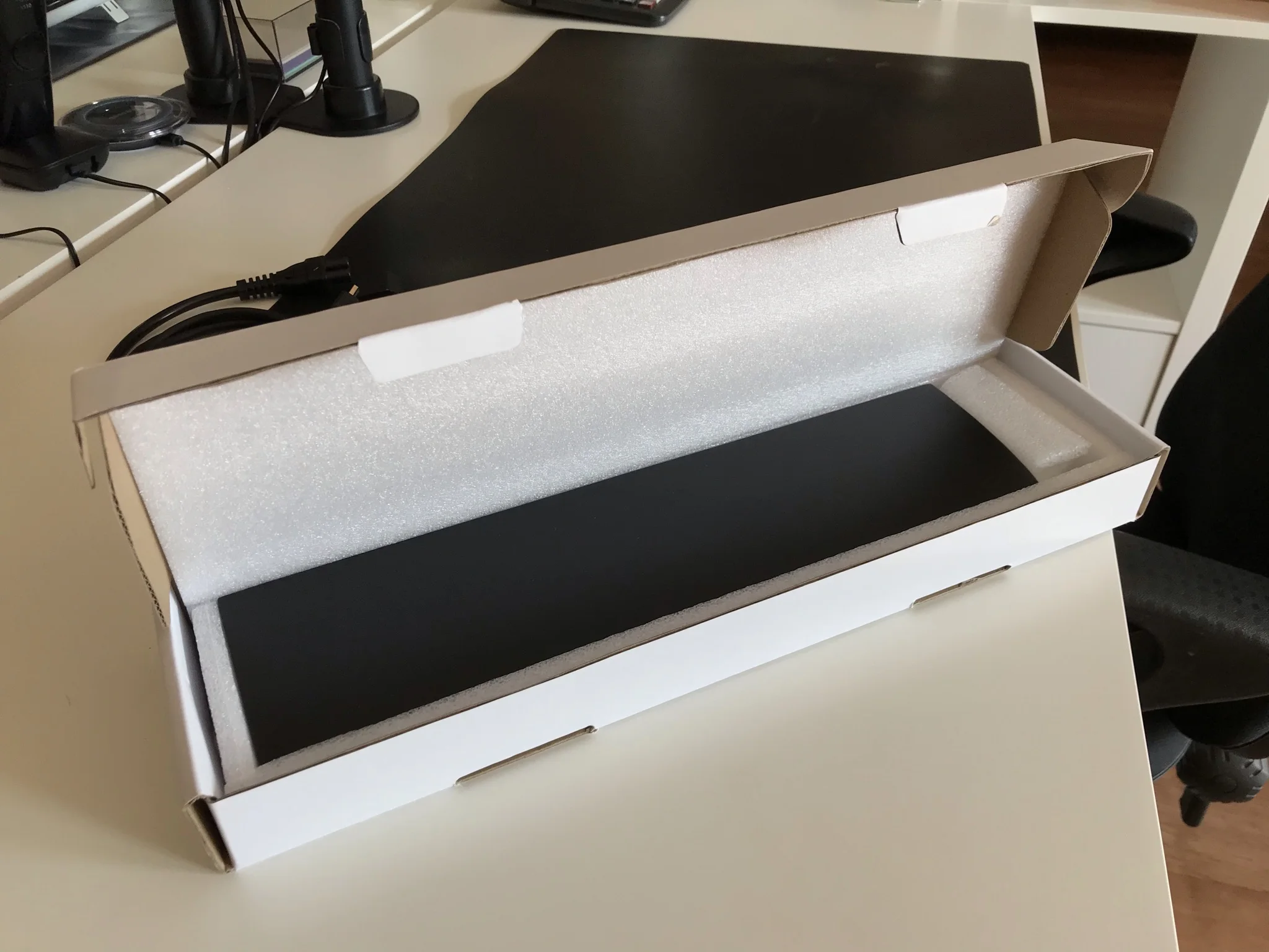 Упаковано в огромный слой пупырки + в коробке небольшая прокладка. Хрупкие товары не всегда так защищают как эту деревяшку. По длине ровно 30см, клавиатура kemove 29,5см. На ощупь и вид приятная, есть прокладки чтобы не скользила. Рекомендую.