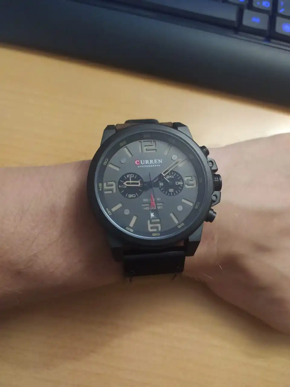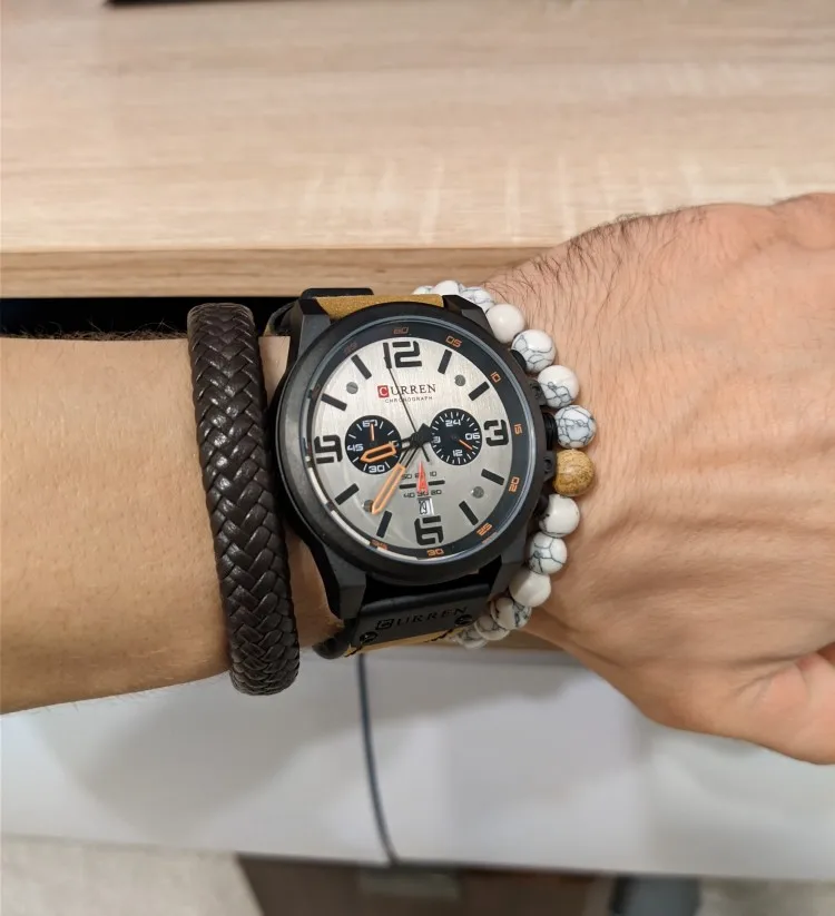 Заказывали уже часы curren, прошлые послужили очень достойно, надеюсь и эти не подведут. Смотрятся солидно, все работает . Ремешок жестковат, надеюсь разносятся.