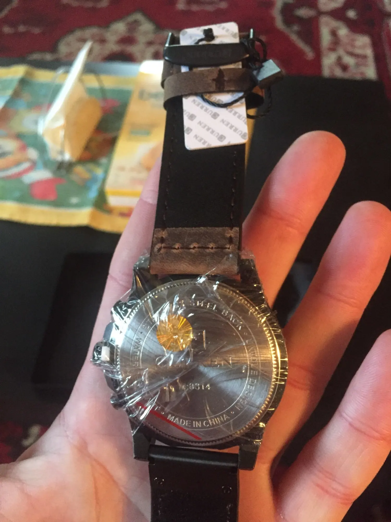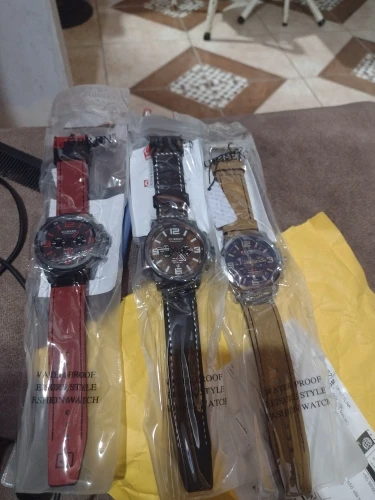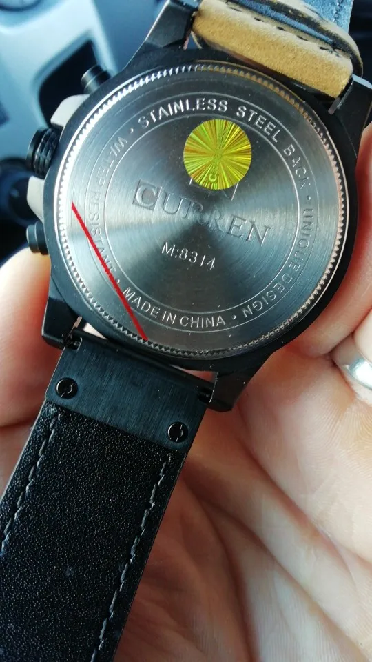 Часы большие и увесистые для моей руки. На ремне остаются следы изгибов и потёртости,в остальном всё супер.На задней крышки нет ни каких потёртостей, лишь красная линия от маркера скорее всего.Заказ добирался 20 дней Р. Башкортостан