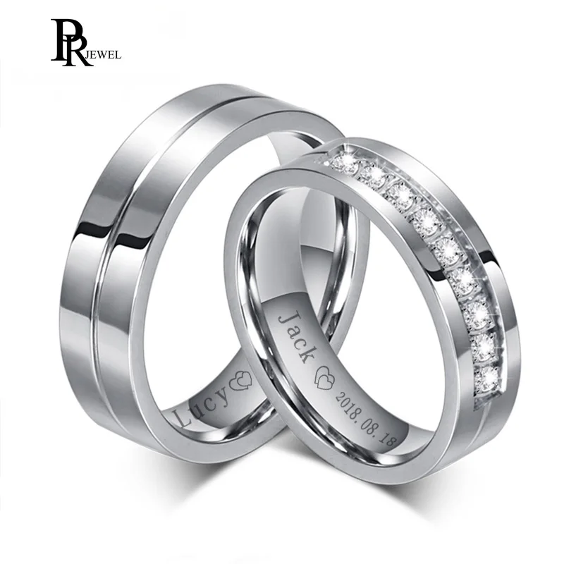 Обручальное кольцо с фианитами, Бесплатная гравировка имени, дата, информация о любви, нержавеющая сталь, ювелирные изделия на заказ