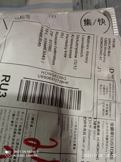 Страна: RU Доставка: Cainiao Super Economy 28.01.2021