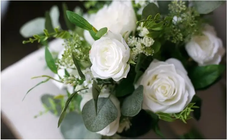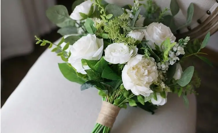 JaneVini 2020 белый искусственный букет невесты из роз цветы невесты пион ручной работы зеленые листья Свадебный букет sztuczne bukiety