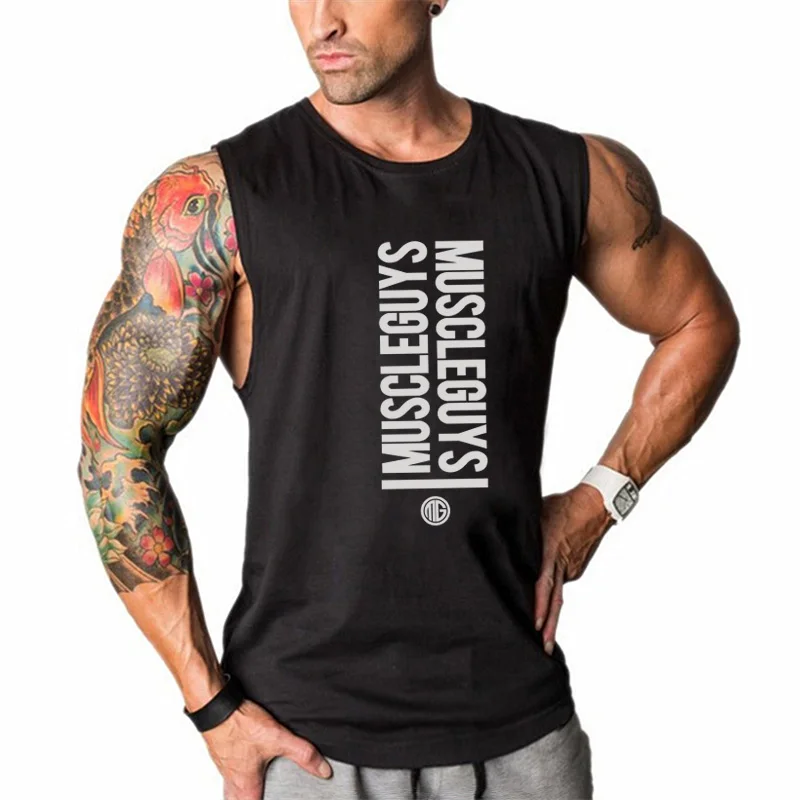 Мужская хлопковая майка Muscleguys, одежда для фитнеса или бодибилд...