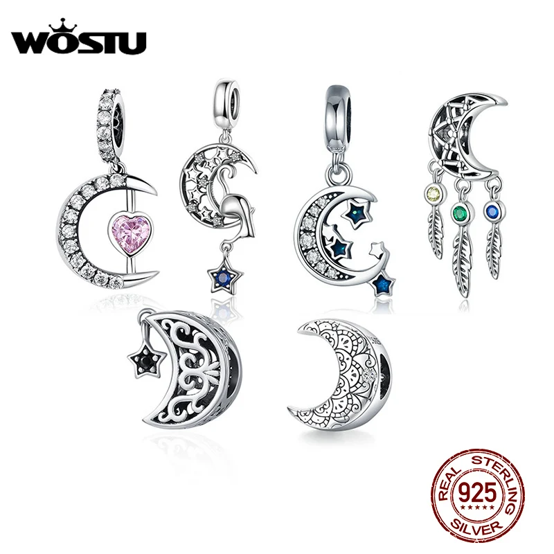 Женский серебряный браслет Луна и звезды, из серебра 925 пробы