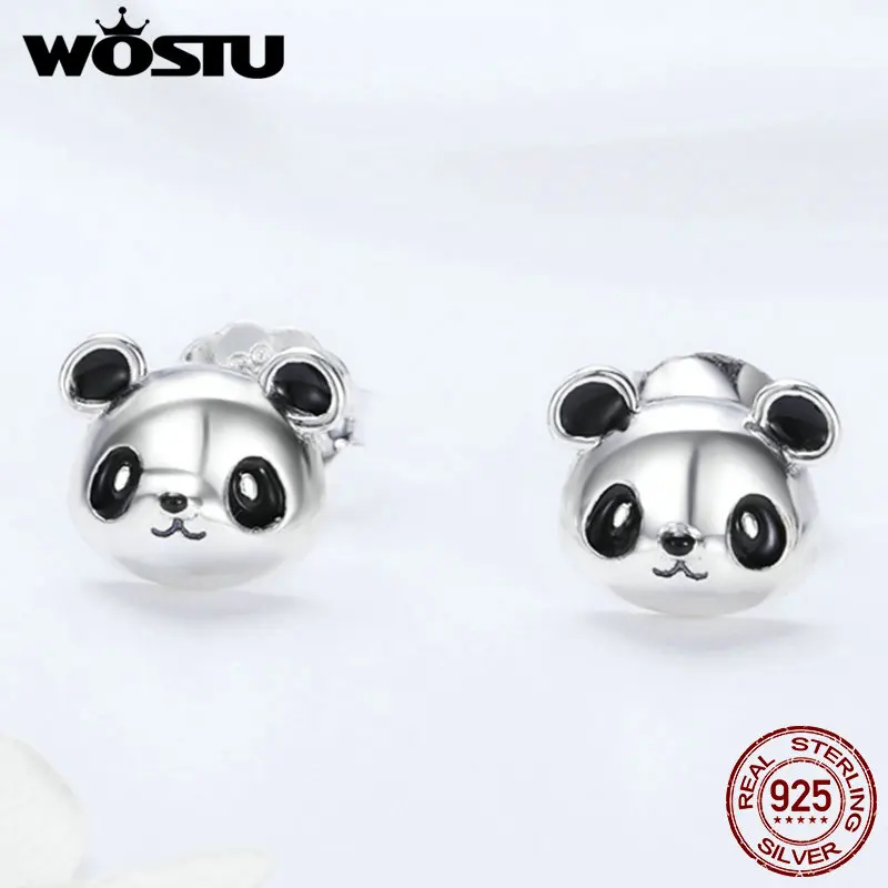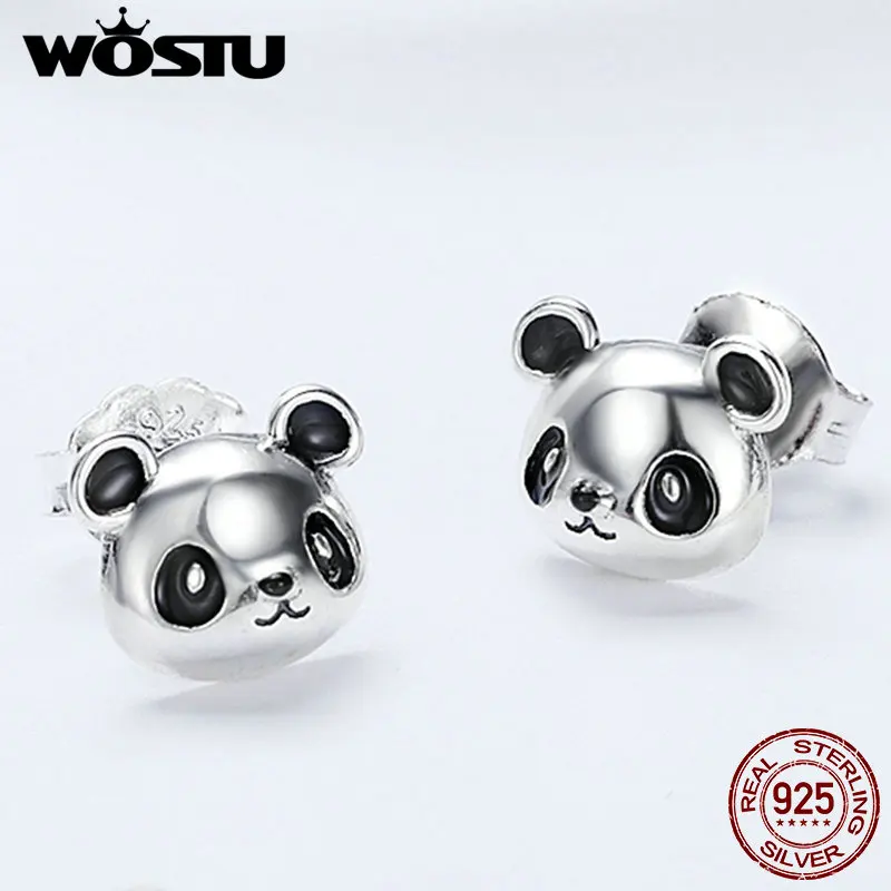 Женские серьги-пусеты WOSTU, из 100% стерлингового серебра 925 пробы с милой пандой, модные украшения в подарок, Прямая поставка CQE386