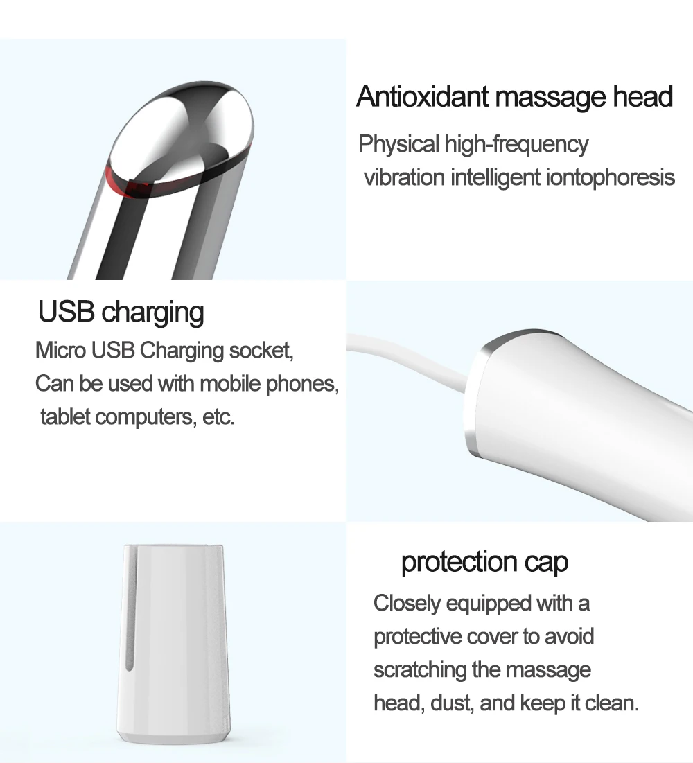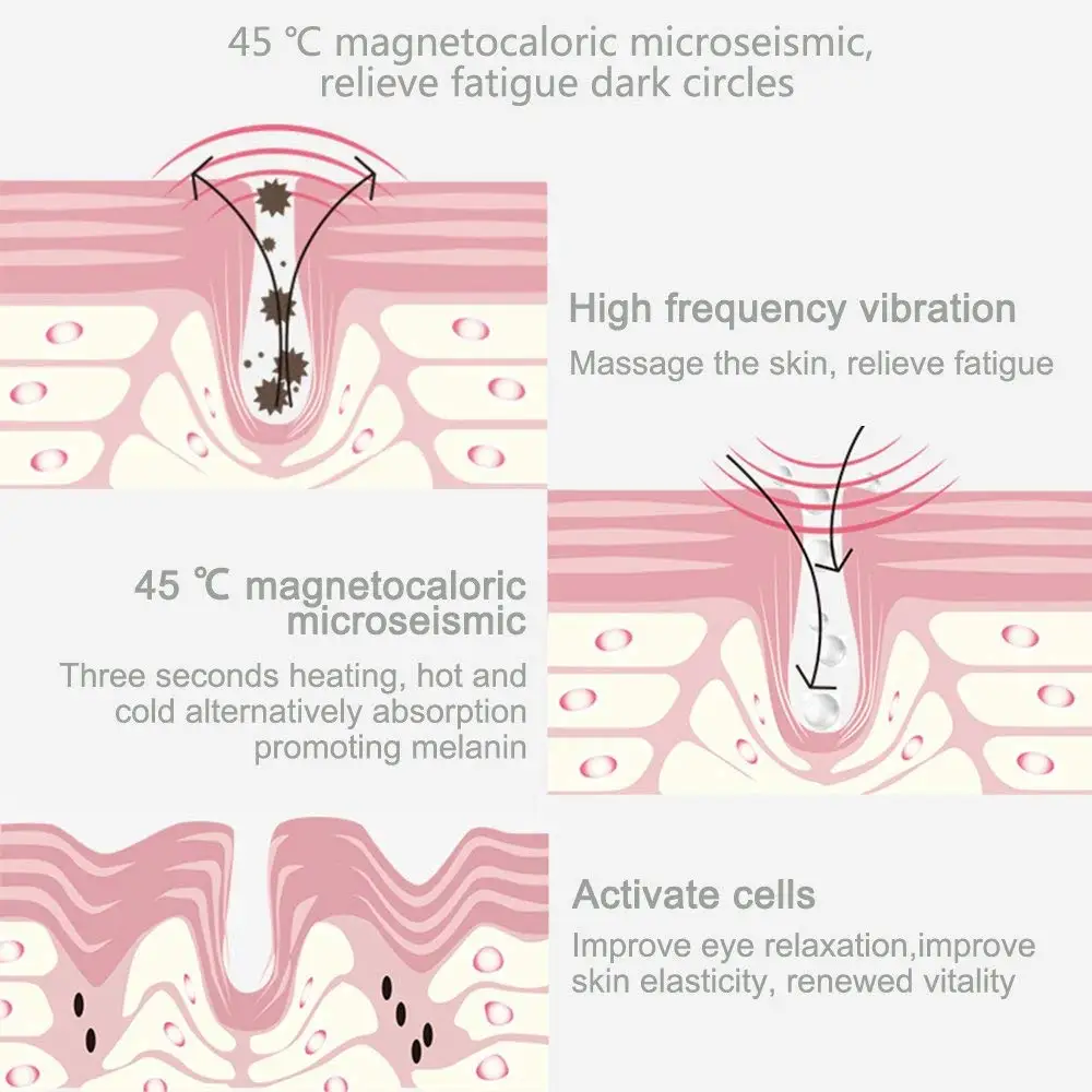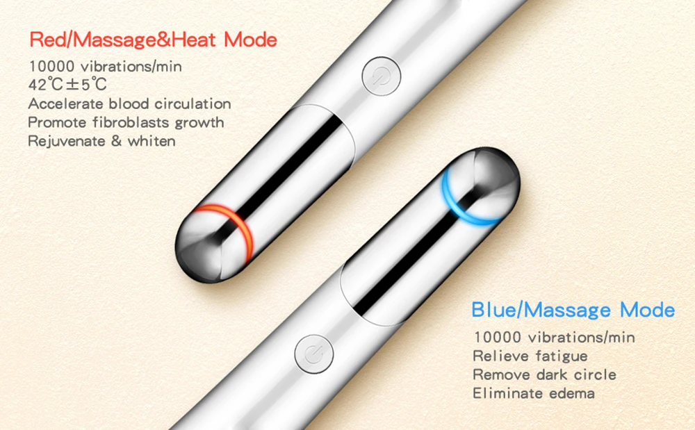 С режимом массажа Blue Light, может снять усталость, помочь коже выводить токсины и устранить отек, может изменить контур глаз и изгиб, а также сделать кожу упругой и упругой.