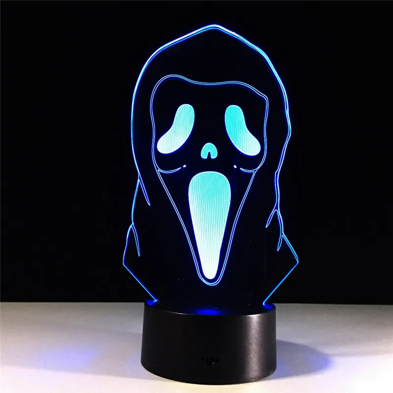 Хэллоуин маска 3D иллюзия Лампа красочный градиент атмосфера лампа Детская Спальня украшение дома светильник ing 3D светодиодный Ночник светильник